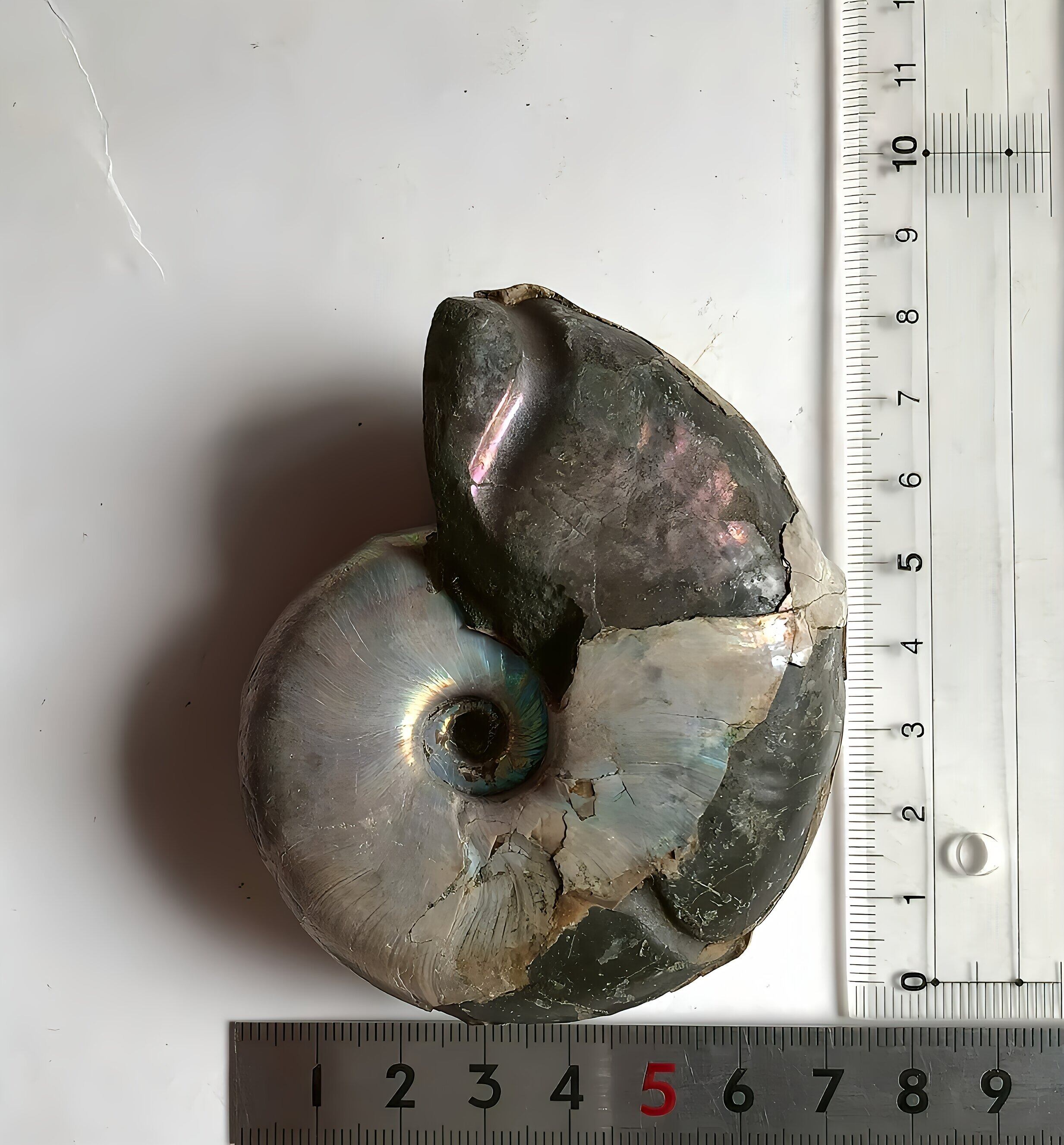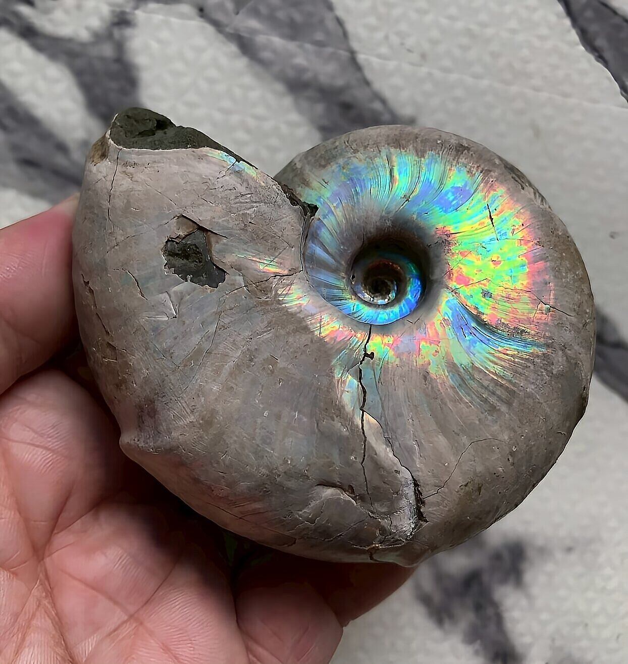 商品名:マダガスカル産 デスモセラス Desmoceras latidorsatum 青ピンク遊色アンモナイト小個体