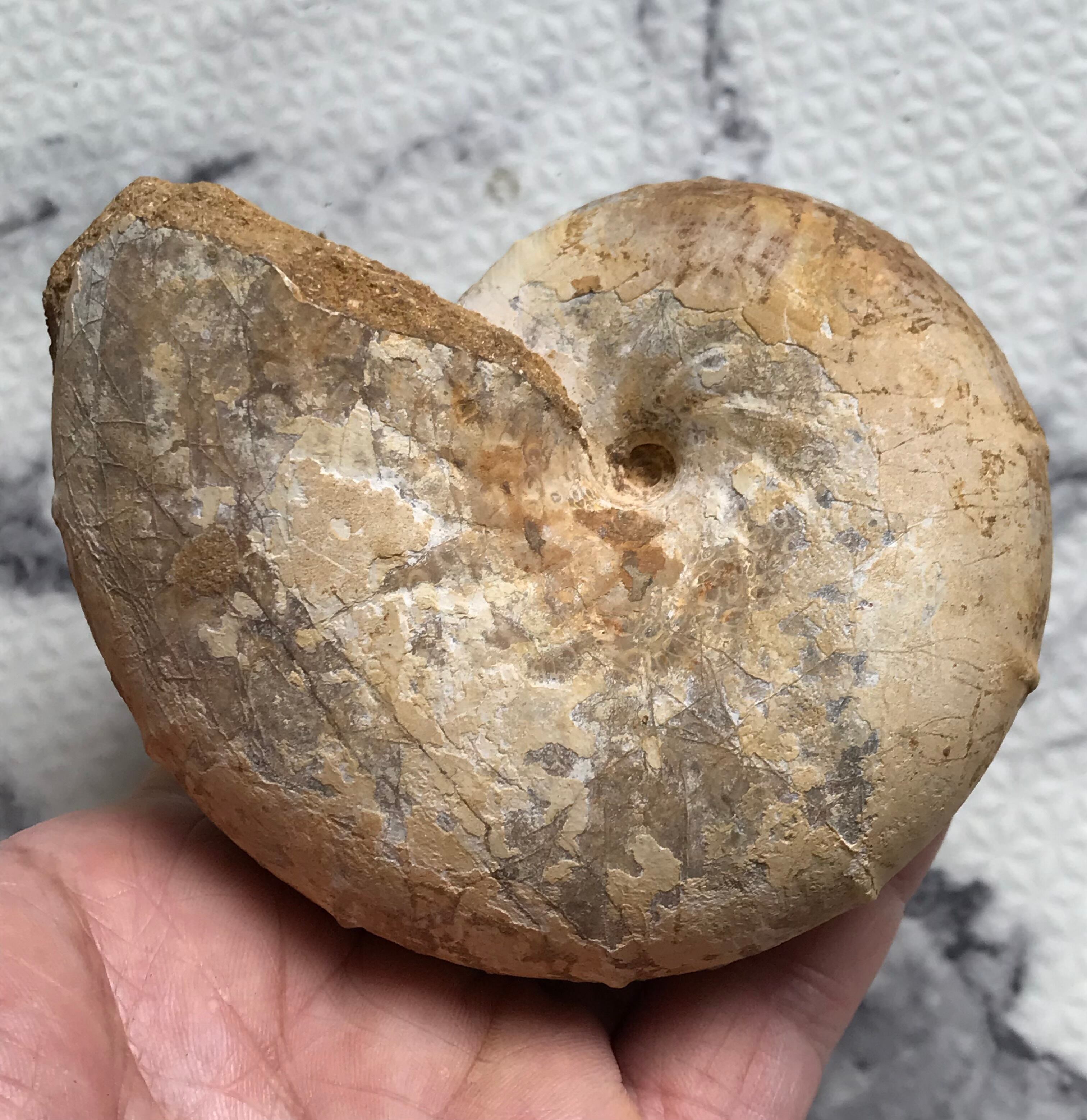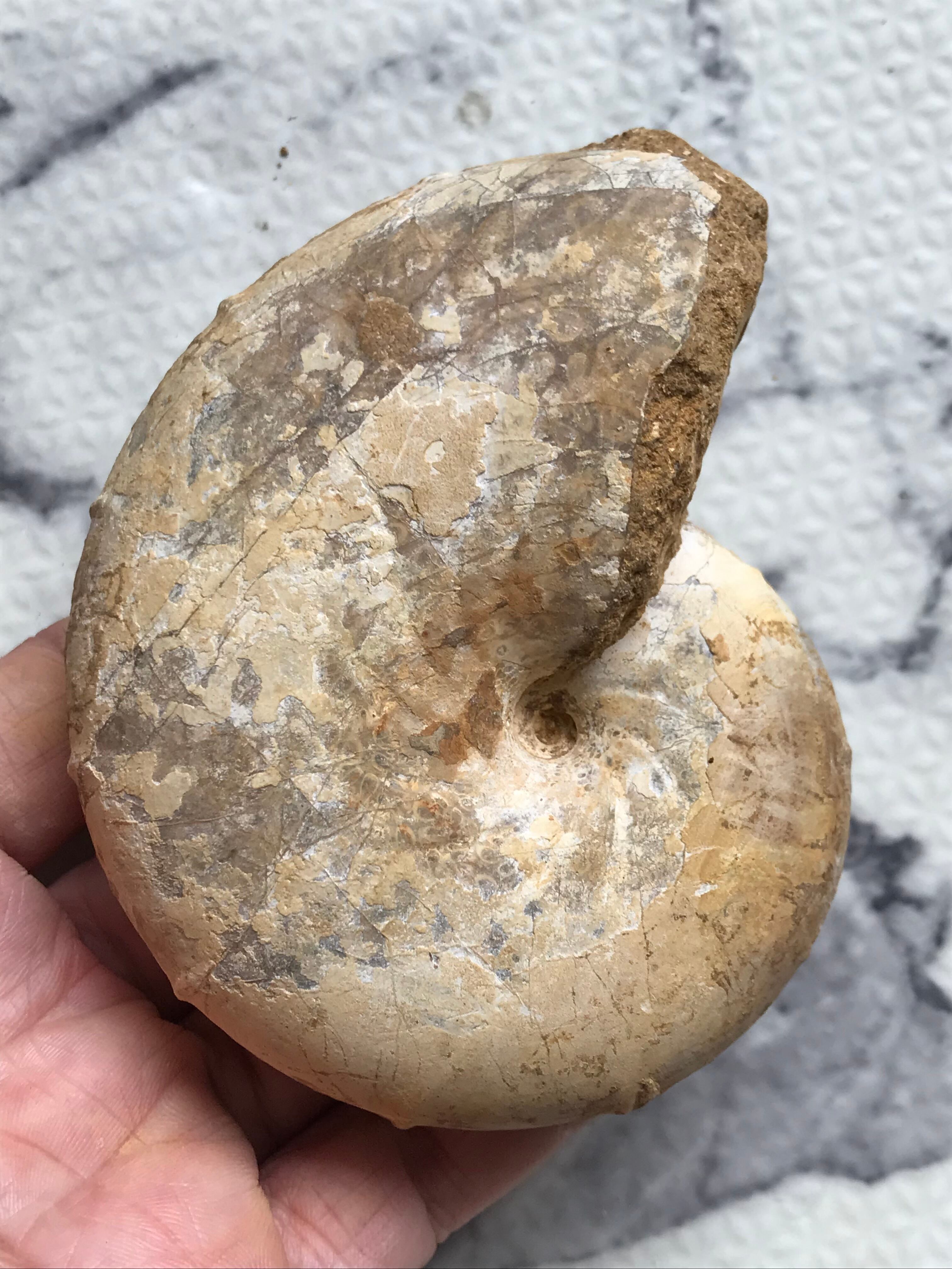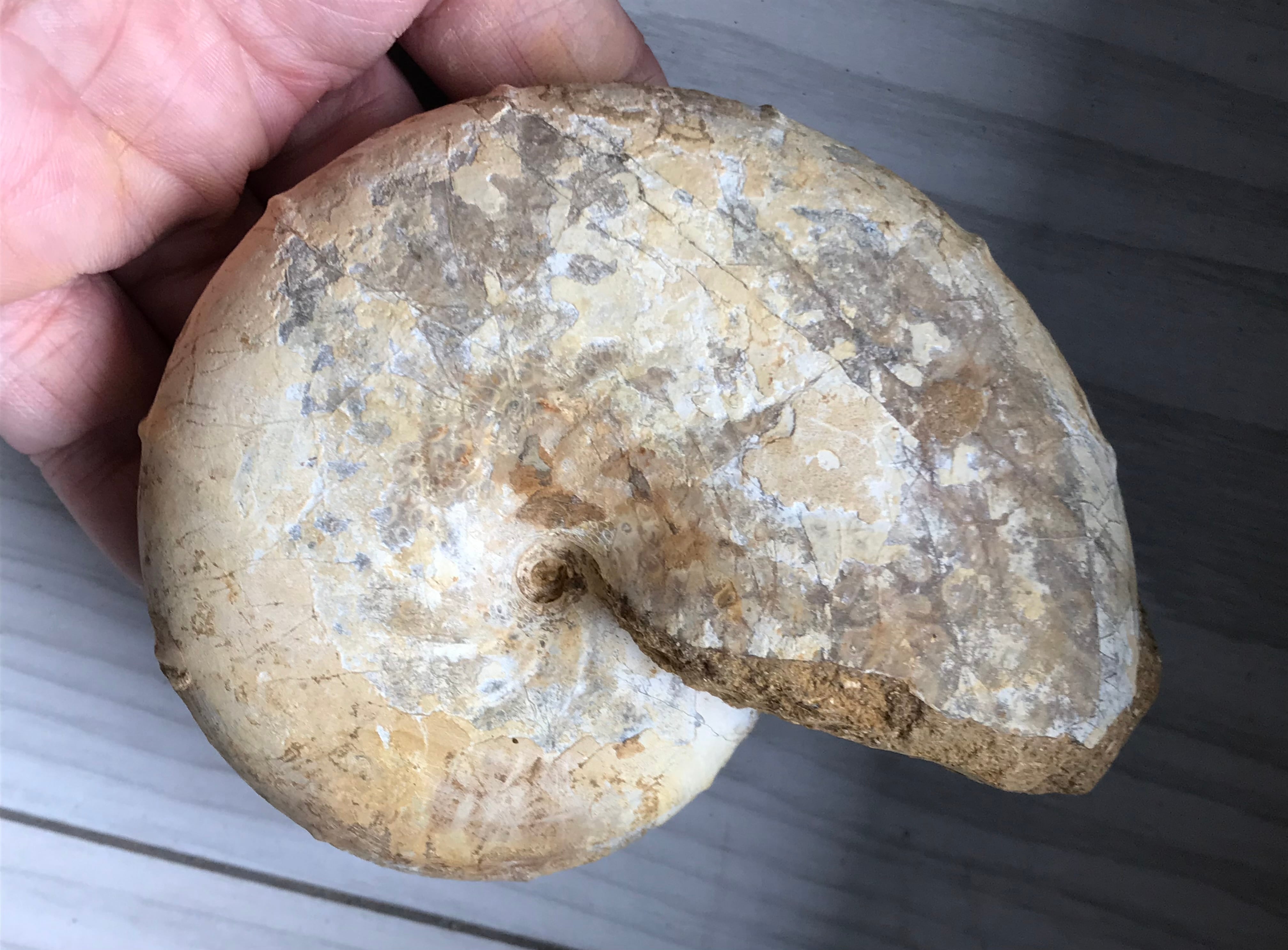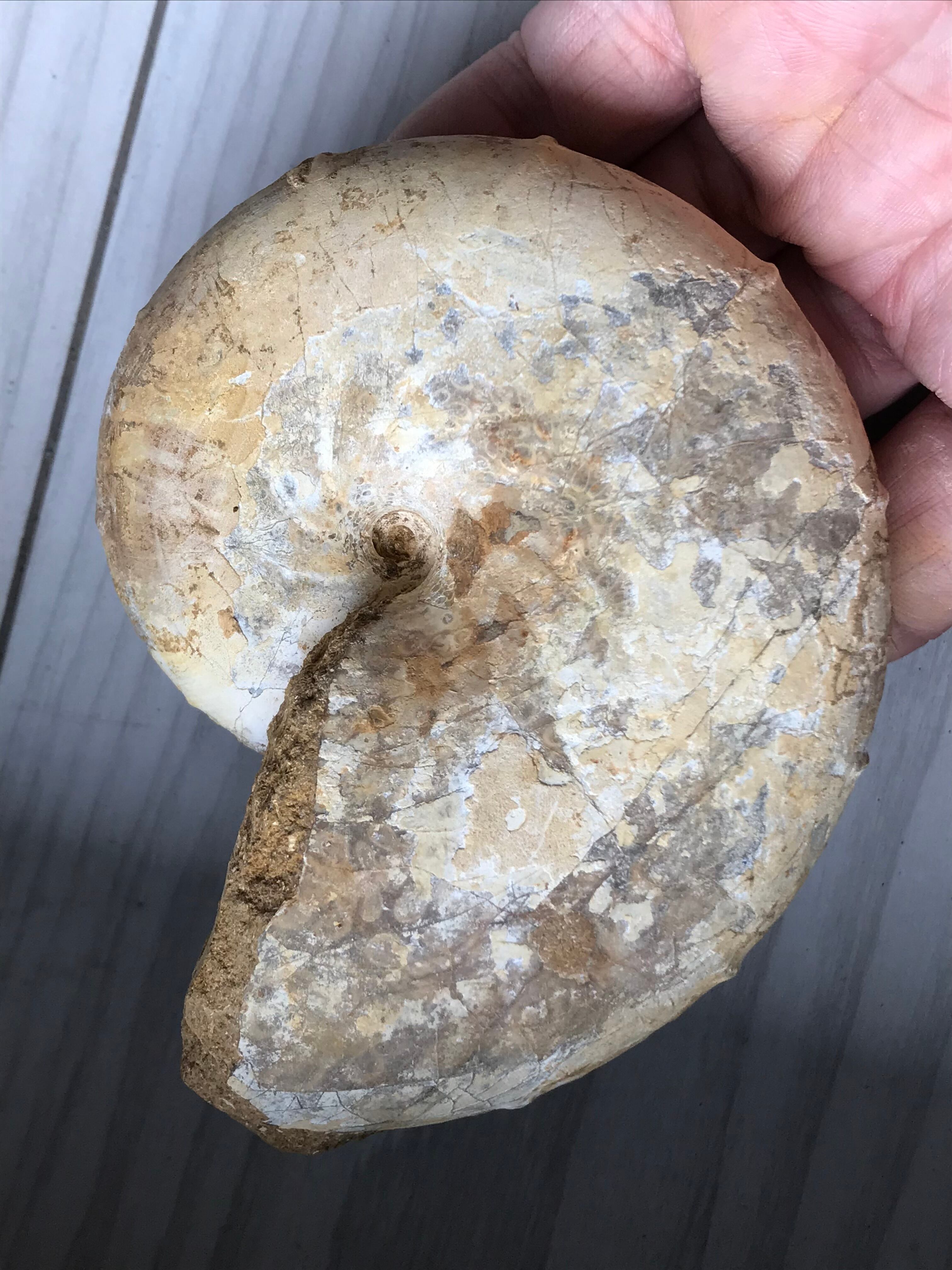 チュレア地層から出る白褐色の未研磨フィロセラスです。自然な色合いのアンモナイトをお探しの方や、プレゼントとしての化石をお考えの方はこの機会にいかがでしょうか。