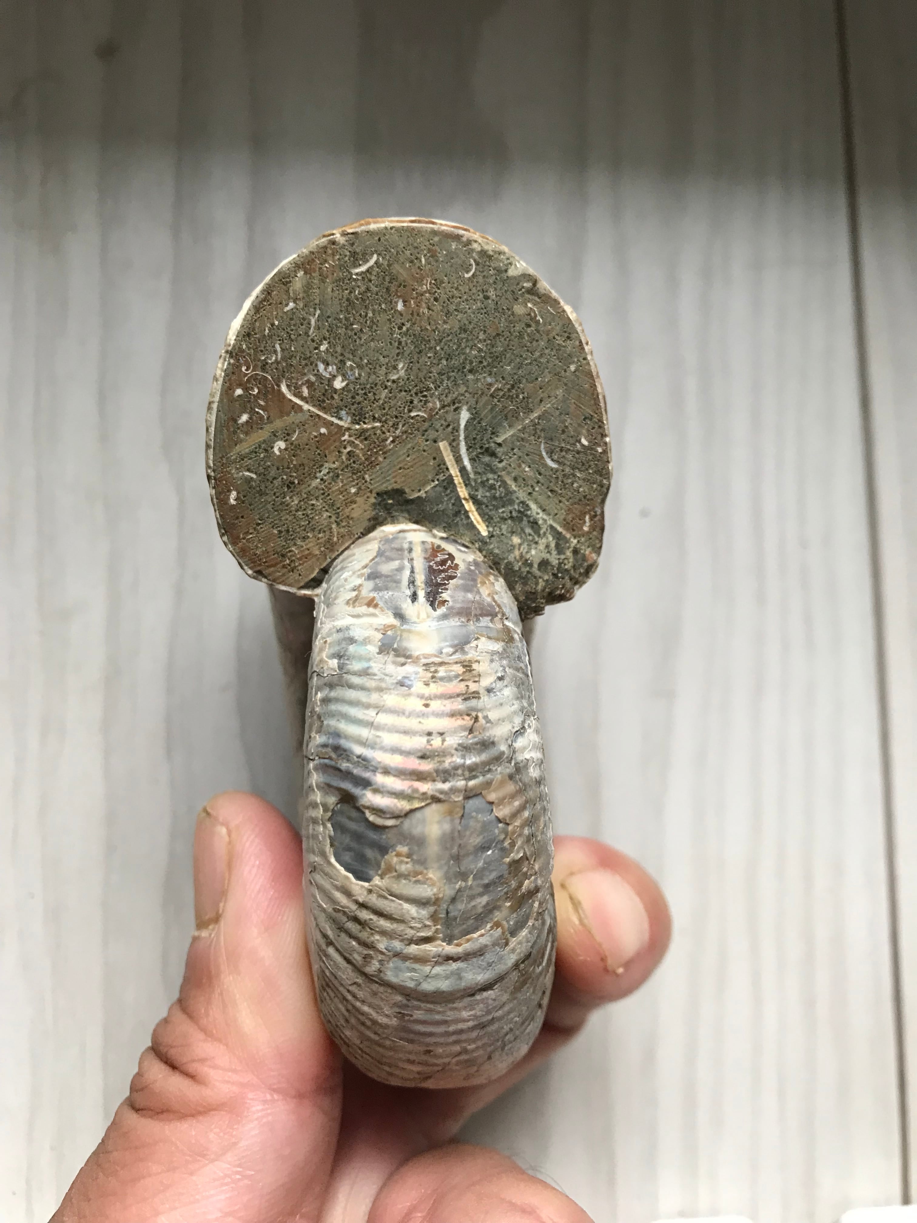 縫合線が見られる光沢研磨済み個体になります。この自然にできたにも関わらず整った縞模様、個体によっては星模様を縫合線と呼びます。
