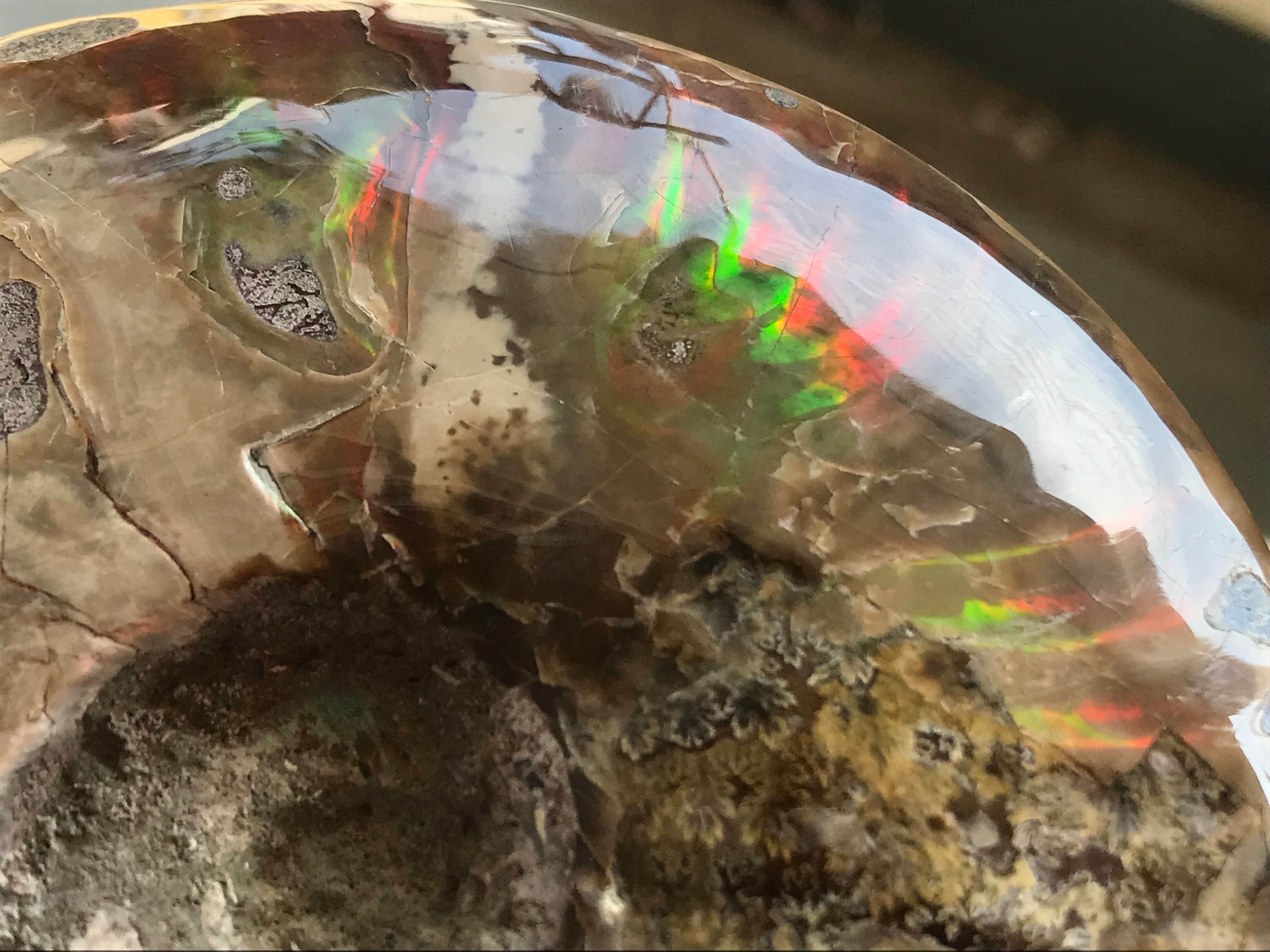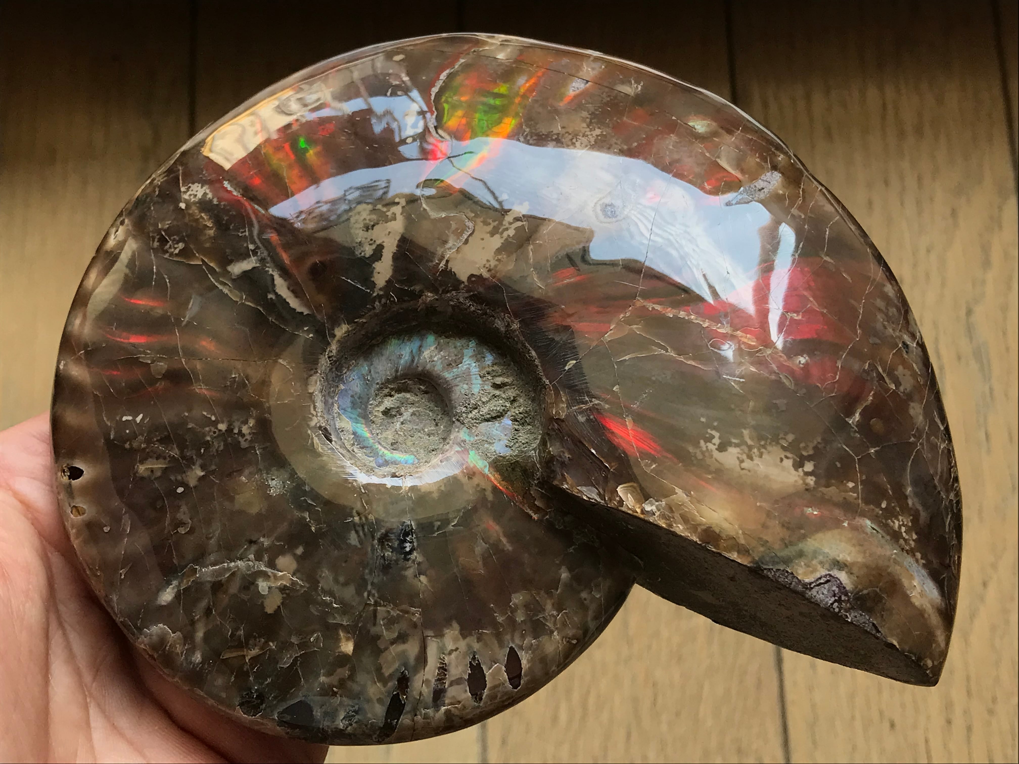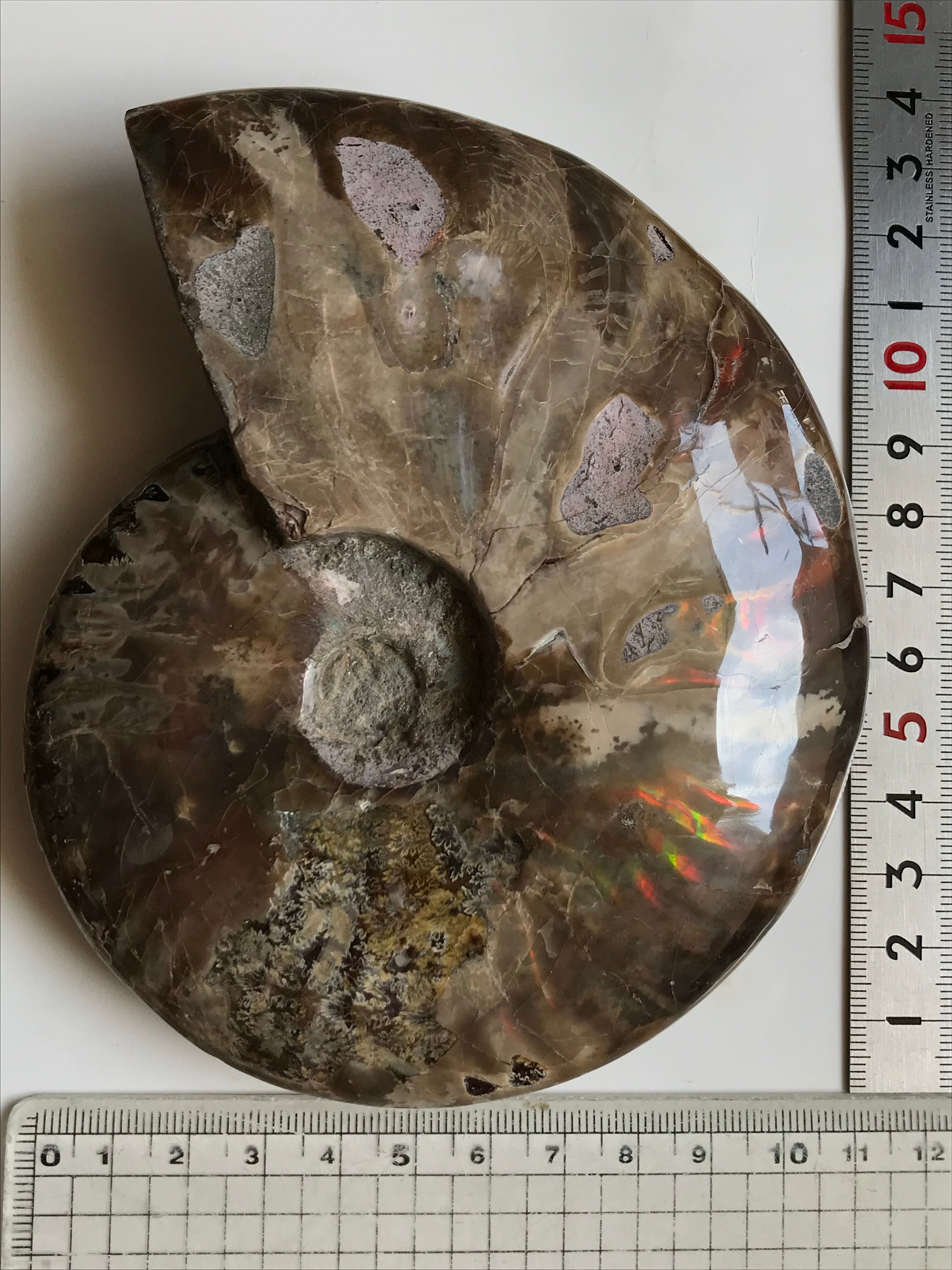 遠方の国マダガスカルから友人を通じて到着したオパール化したアンモナイトになります。ご存知のとおり、アンモナイトは一つ一つが個性をもち、表情が異なりますので、コレクションにいかがでしょうか。
