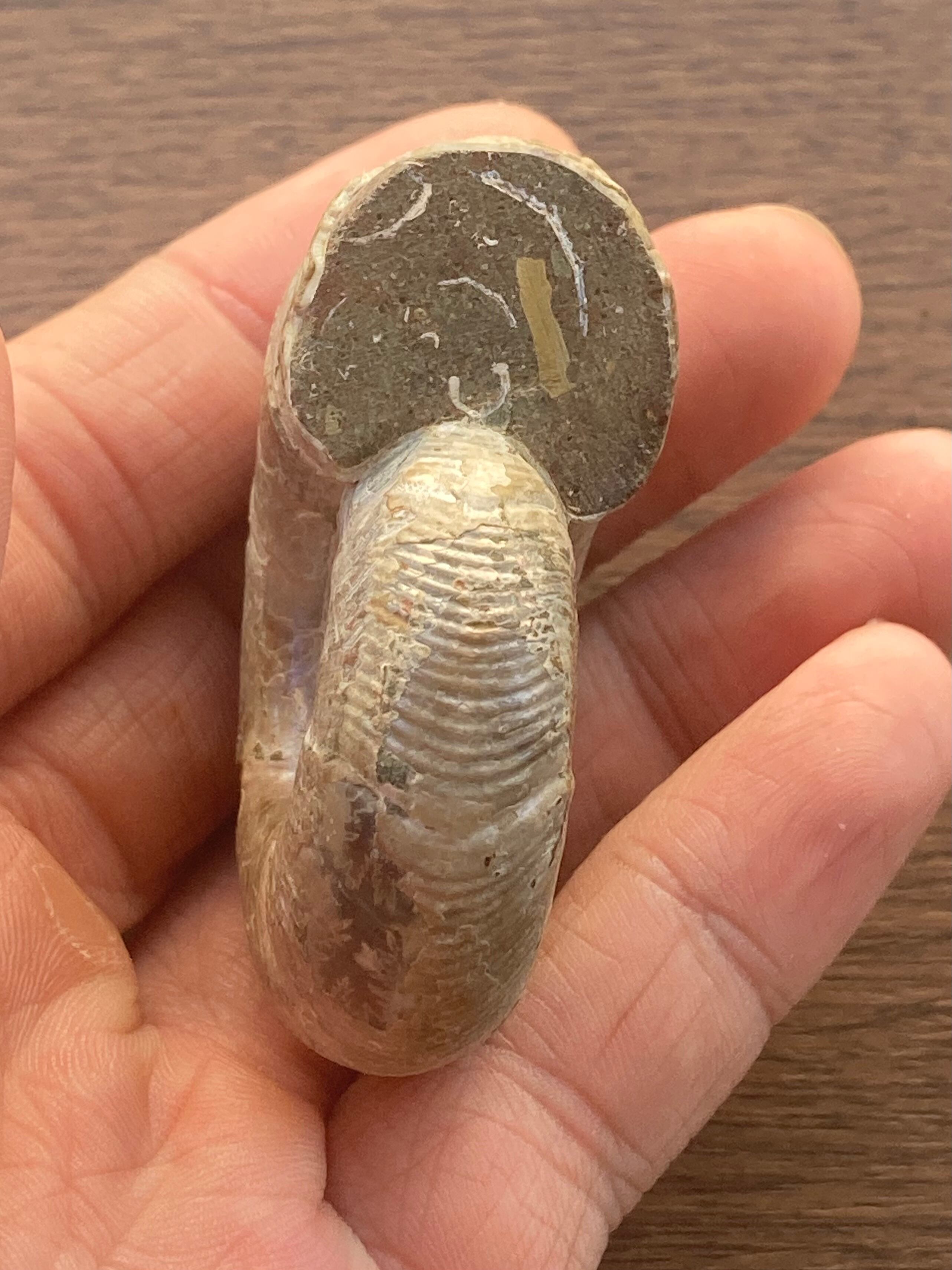 縫合線が見られる光沢研磨済み個体になります。この自然にできたにも関わらず整った縞模様、個体によっては星模様を縫合線と呼びます。