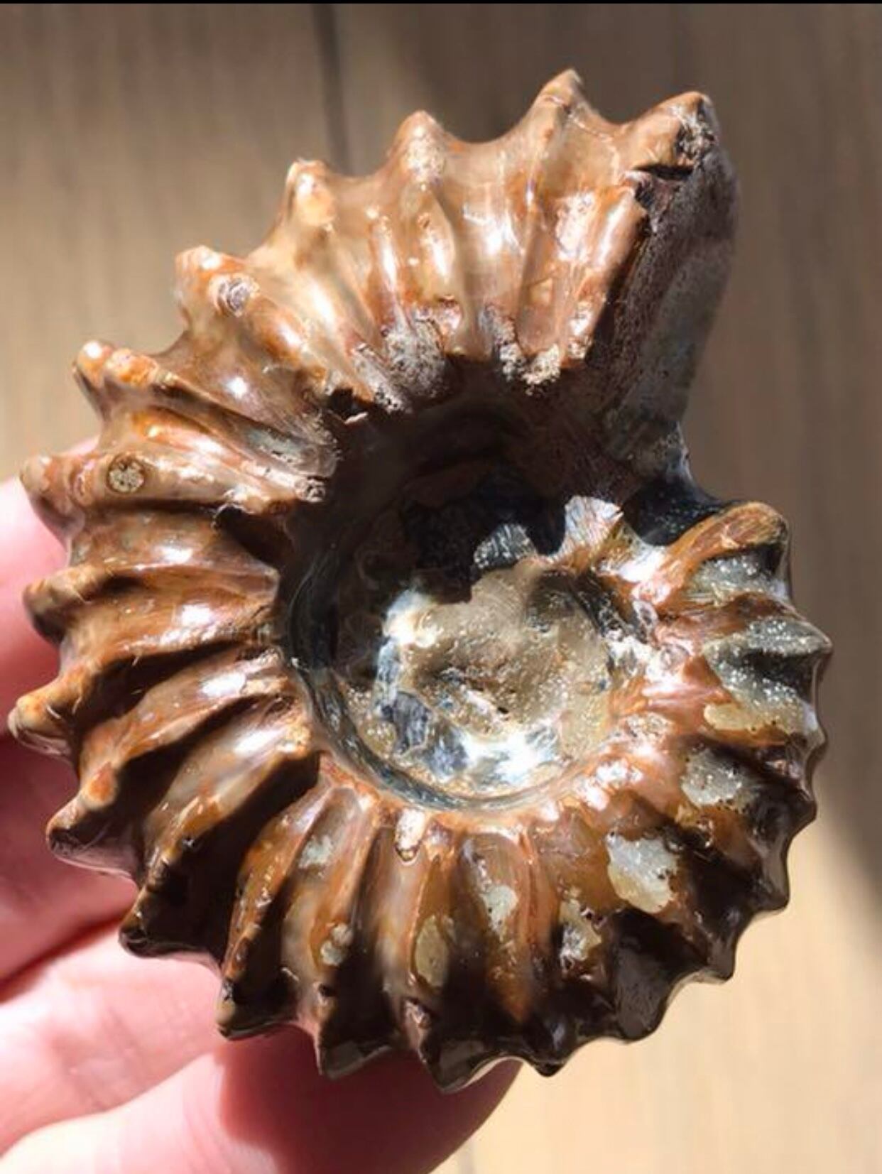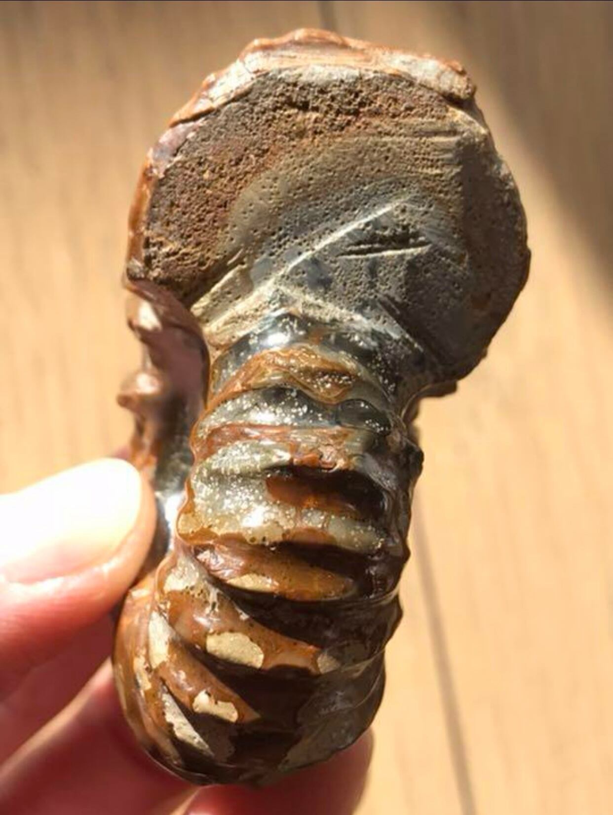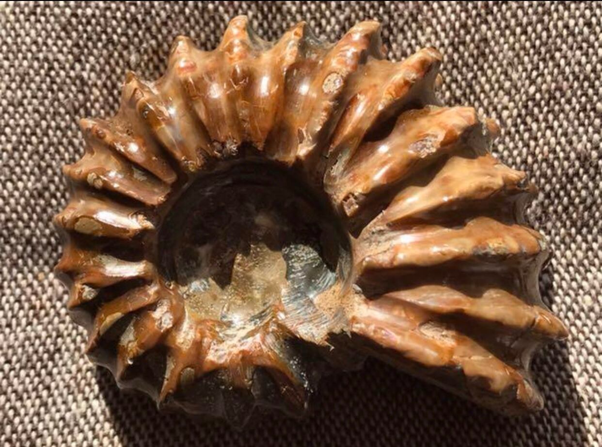 ⭐︎貝を思わせるフォルムで側面の突起物が特徴的な個体です。全体が茶色の珍しい個体です。突起物も大半が綺麗に残っています。コレクションにいかがでしょうか。