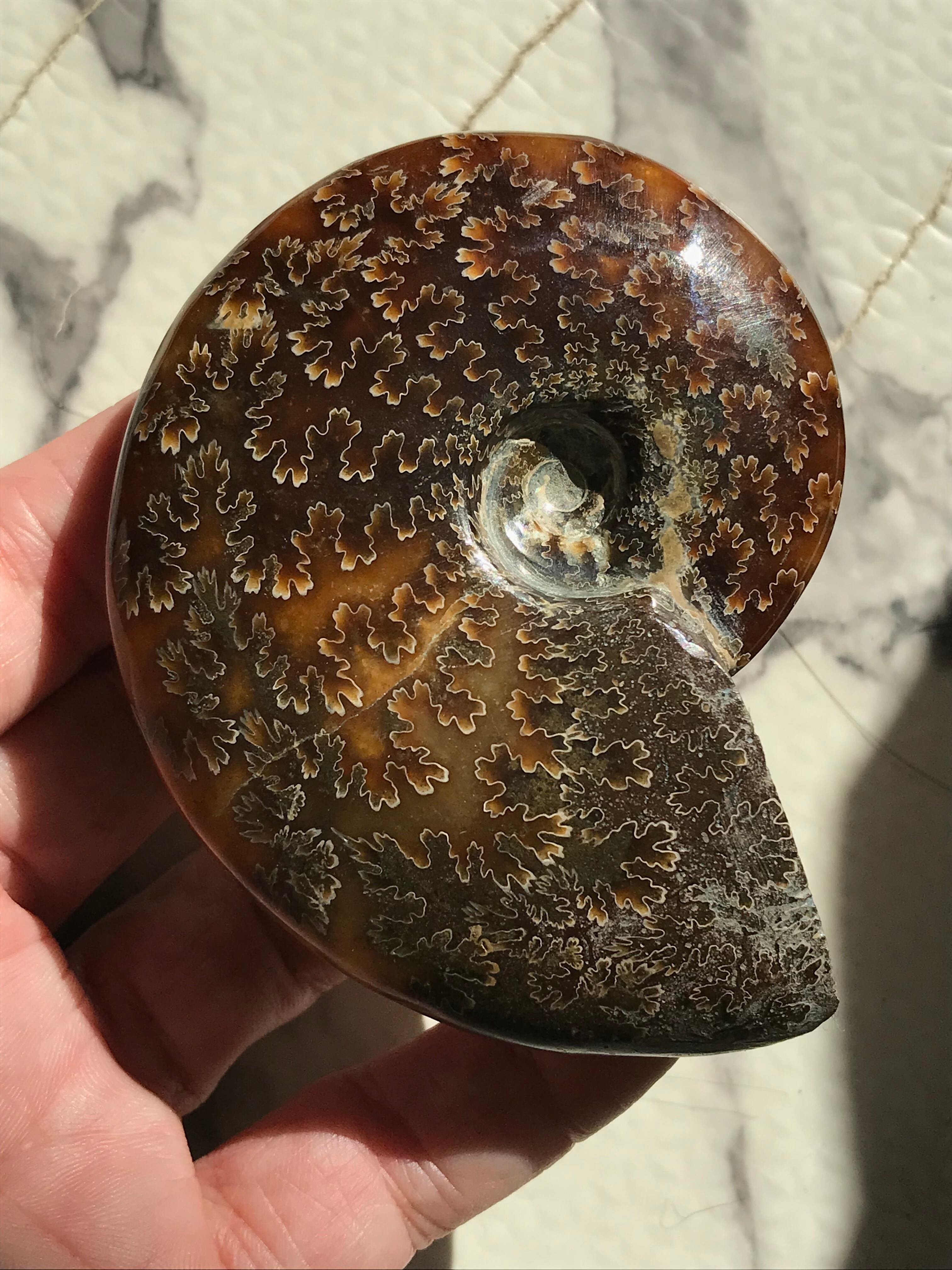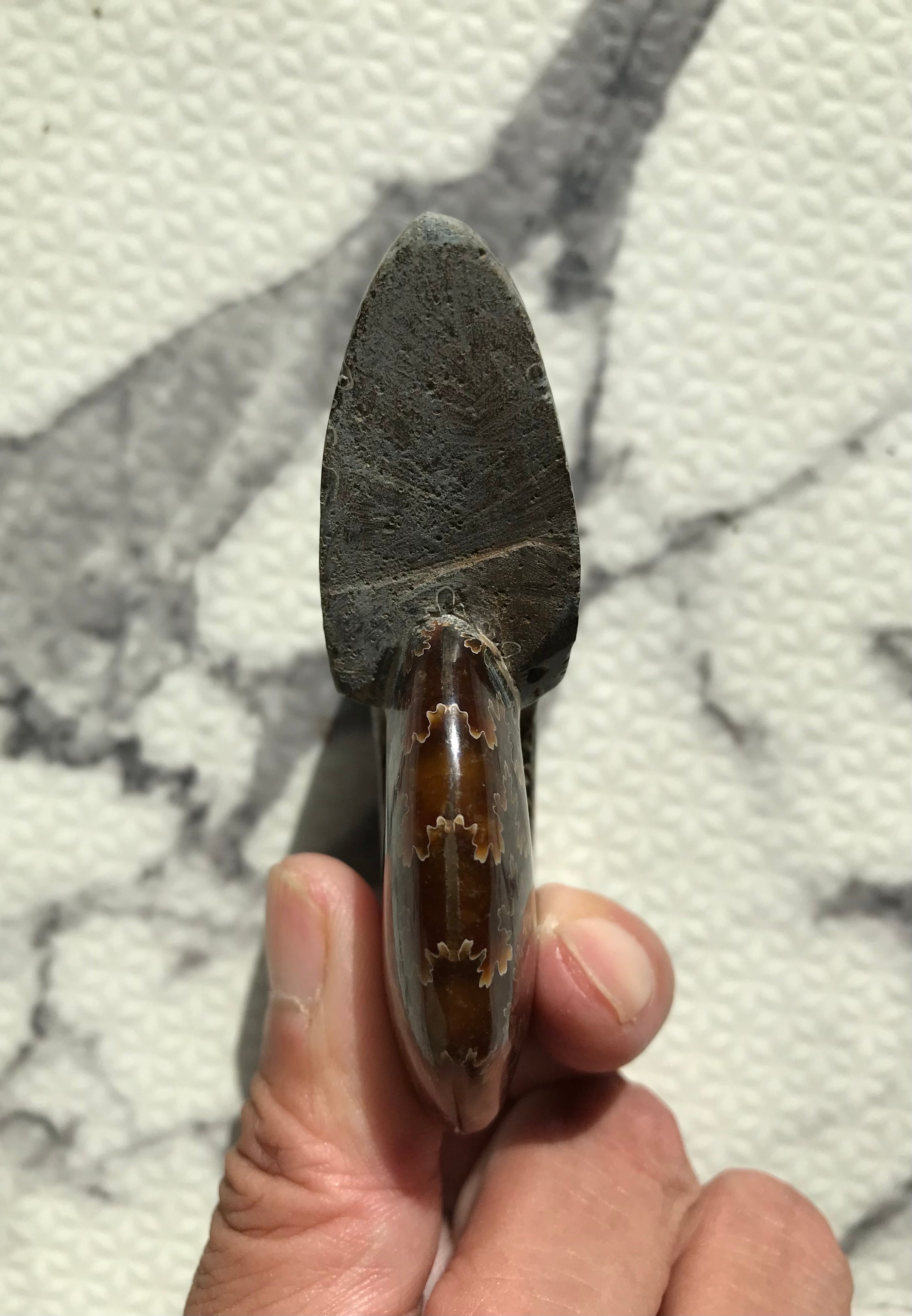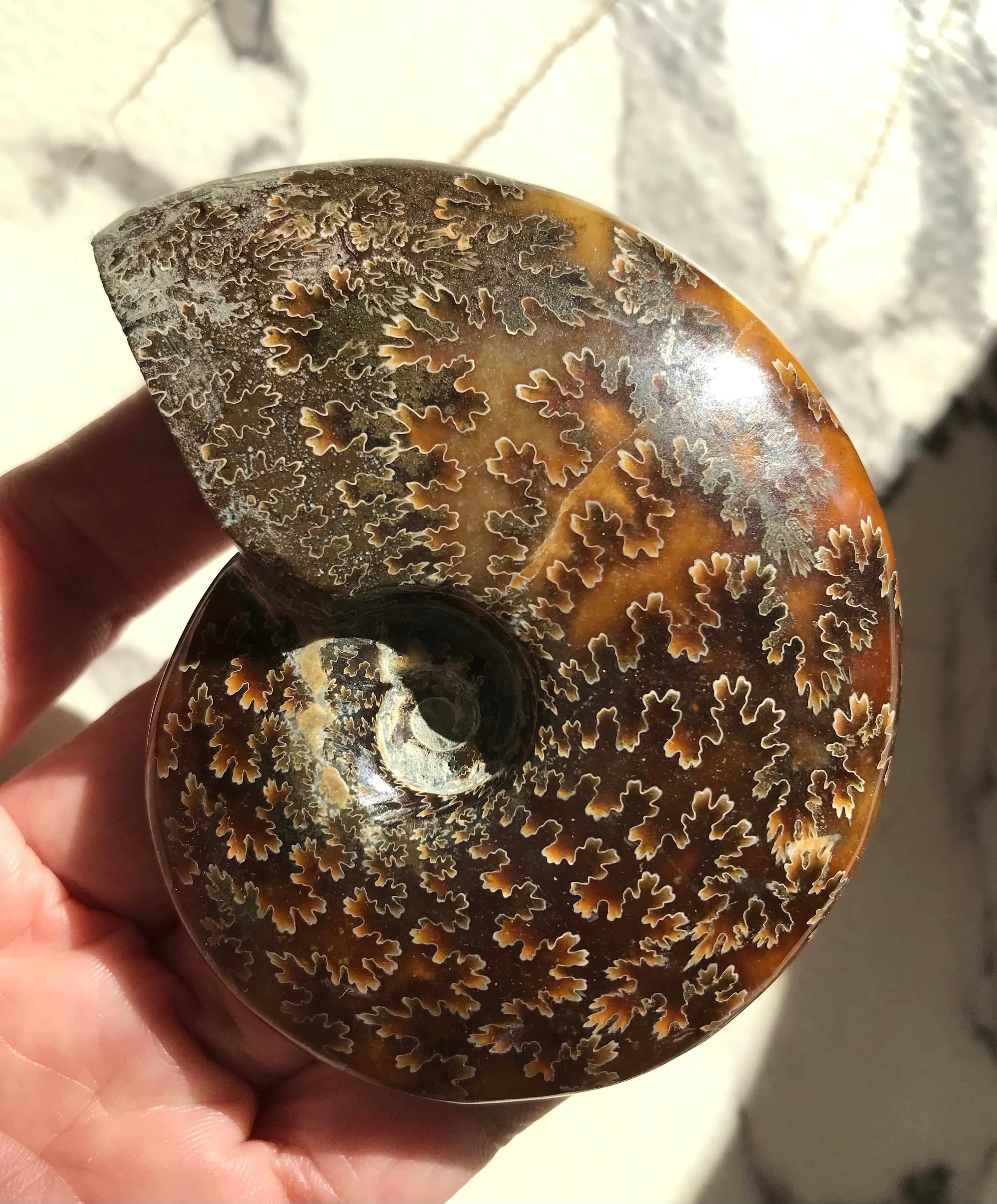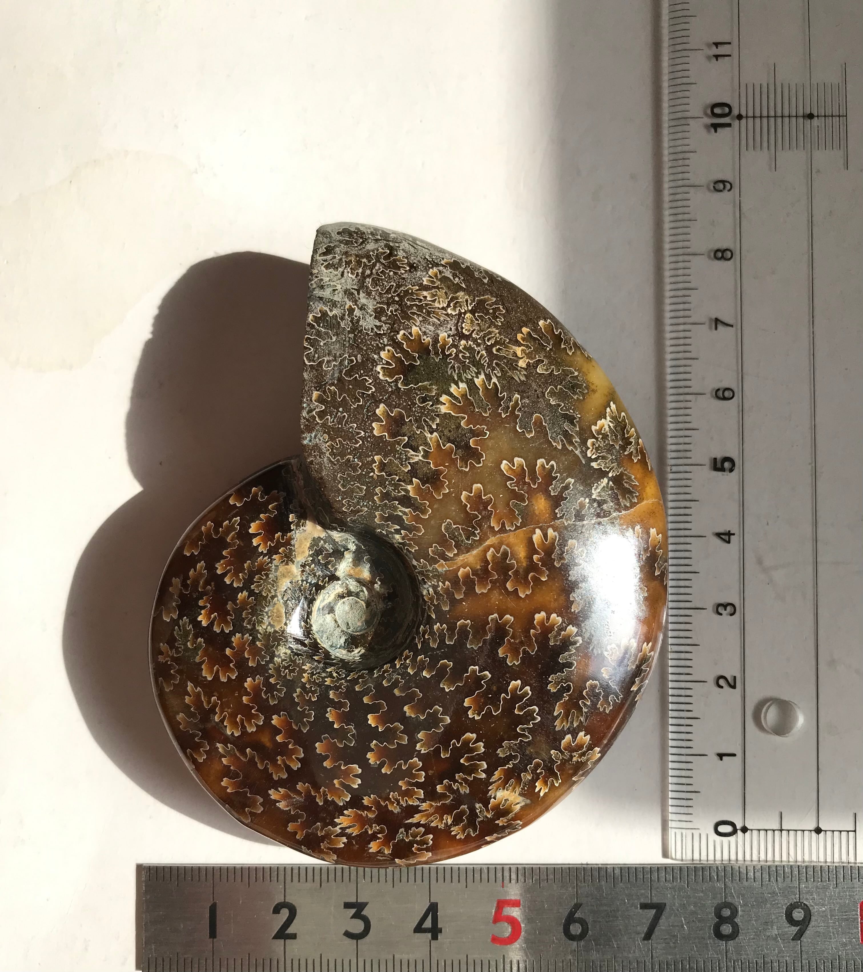 縫合線が見られる光沢研磨済み個体になります。この自然にできたにも関わらず整った縞模様、個体によっては星模様を縫合線と呼びます。