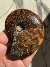 遠方の国マダガスカルから友人を通じて到着した縫合線が現れたアンモナイトになります。ご存知のとおり、アンモナイトは一つ一つが個性をもち、表情が異なりますので、コレクションにいかがでしょうか。
