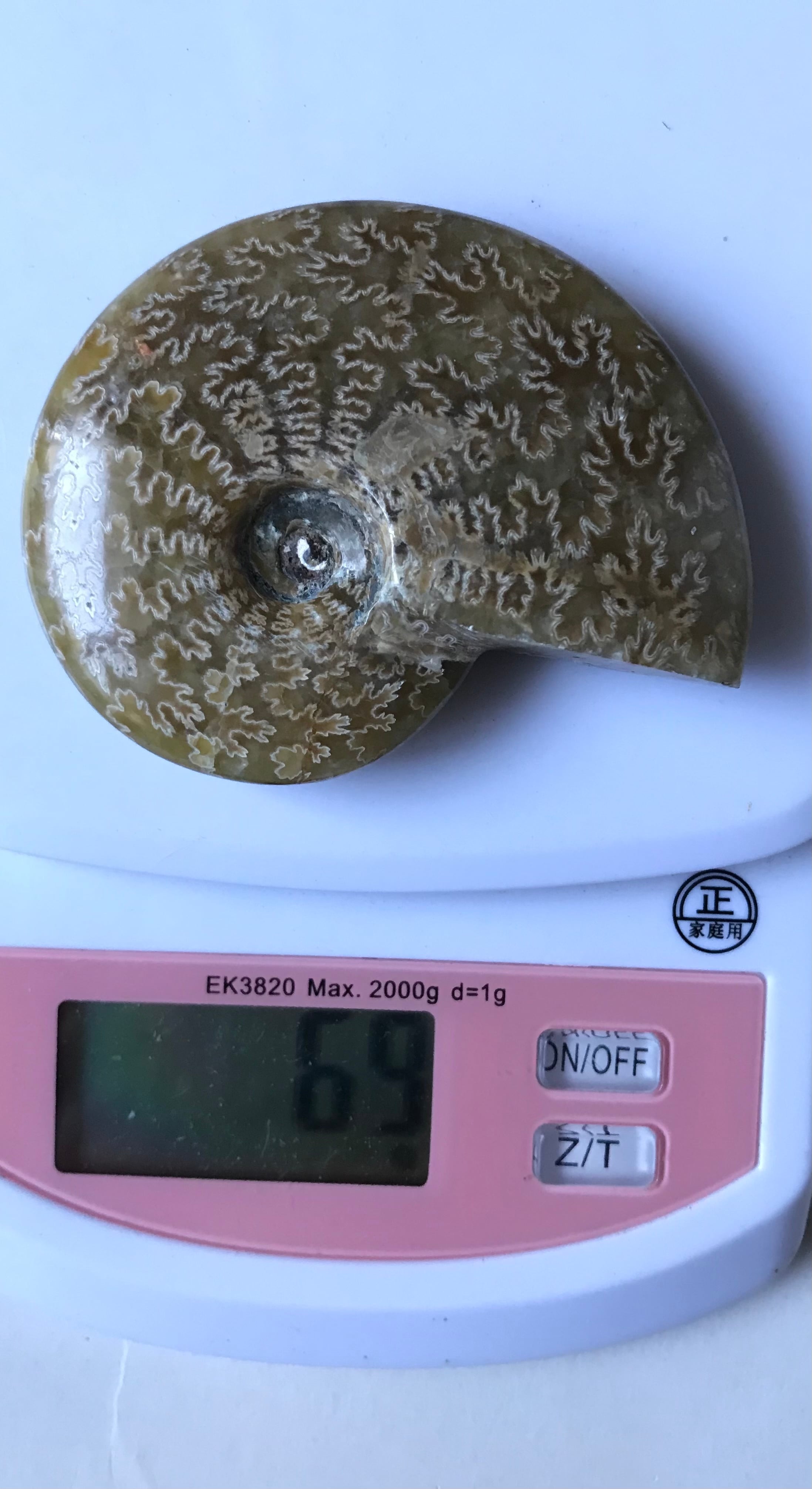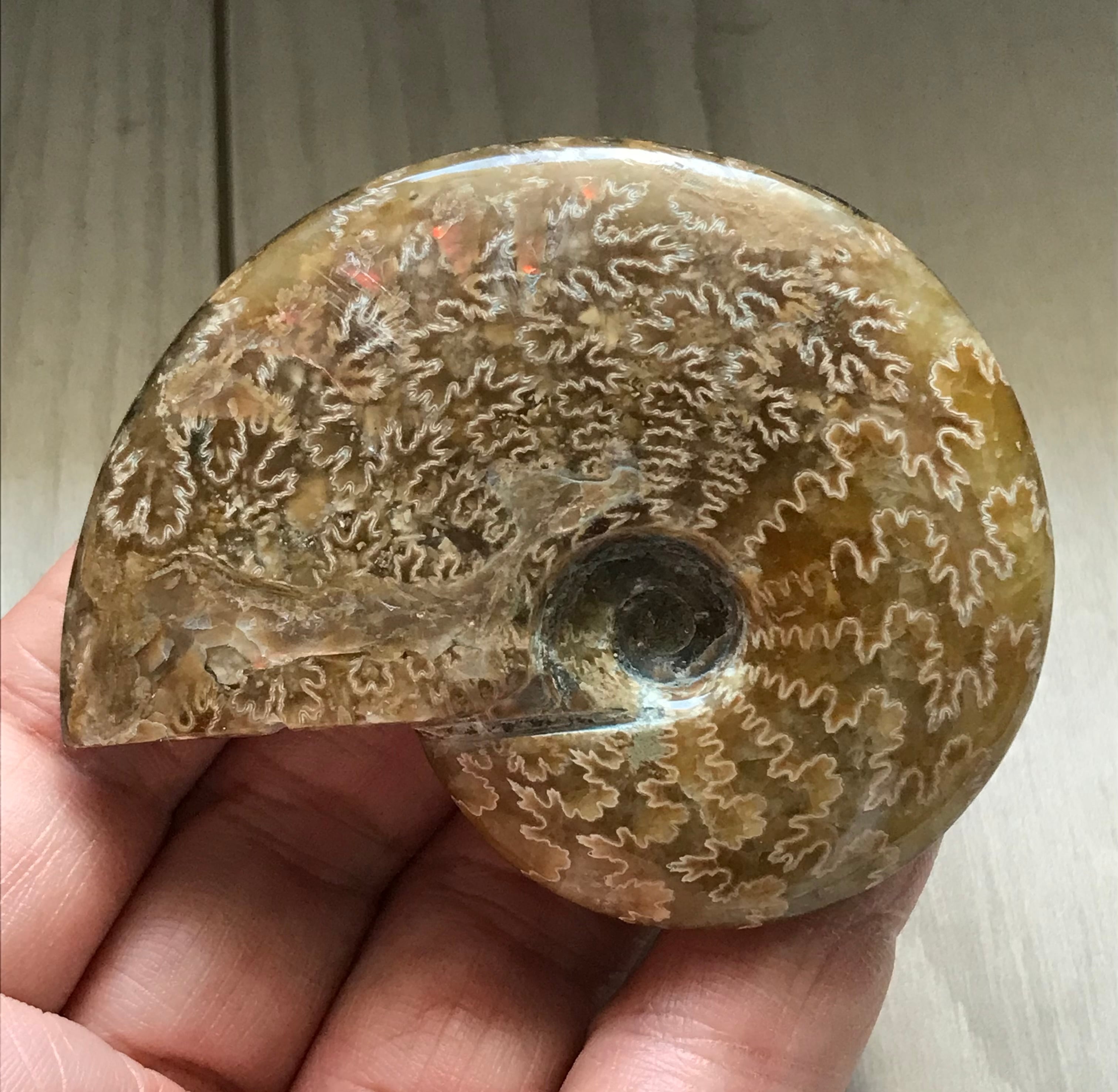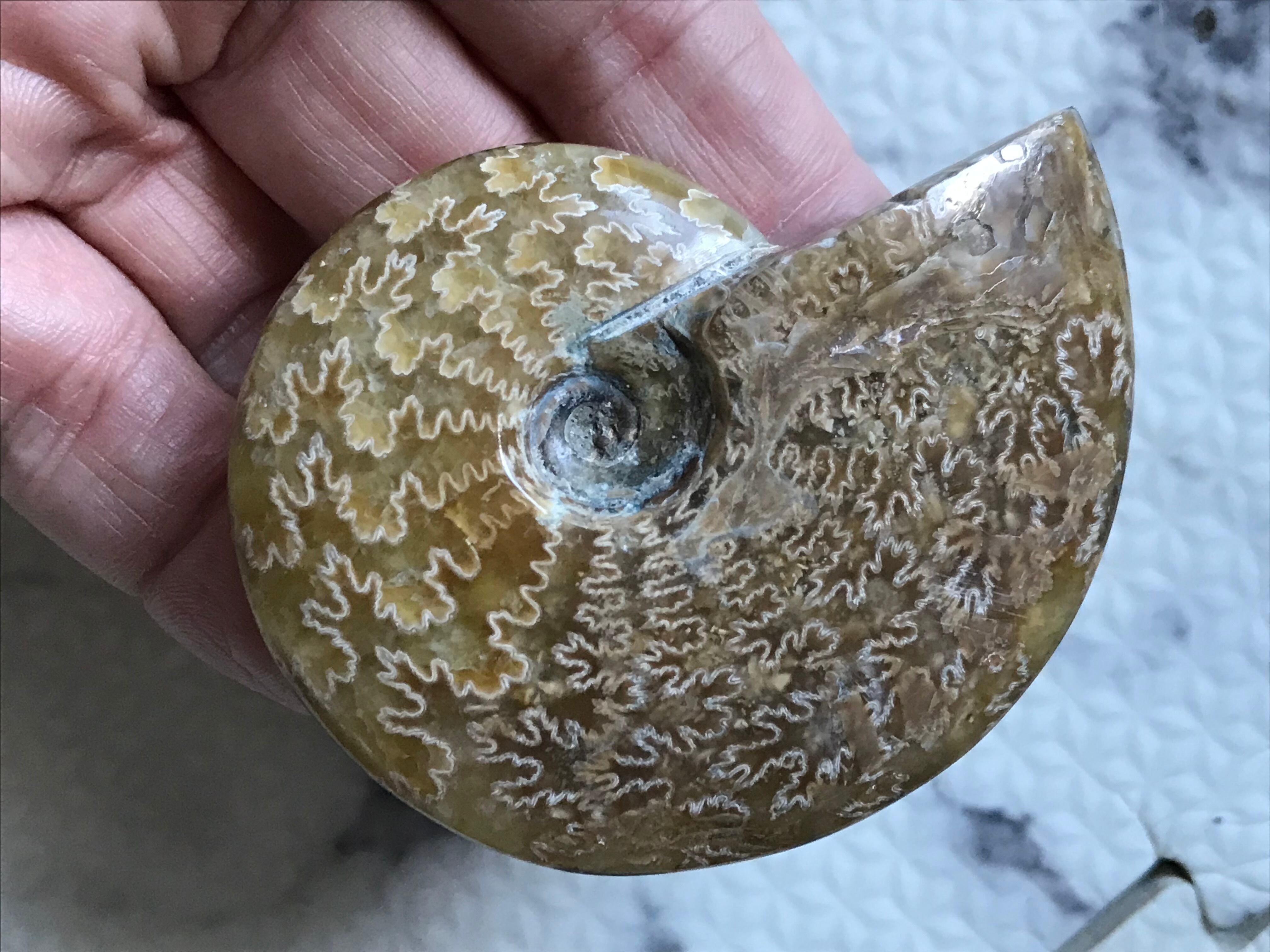 縫合線が見られる光沢研磨済み個体になります。この自然にできたにも関わらず整った縞模様、個体によっては星模様を縫合線と呼びます。
