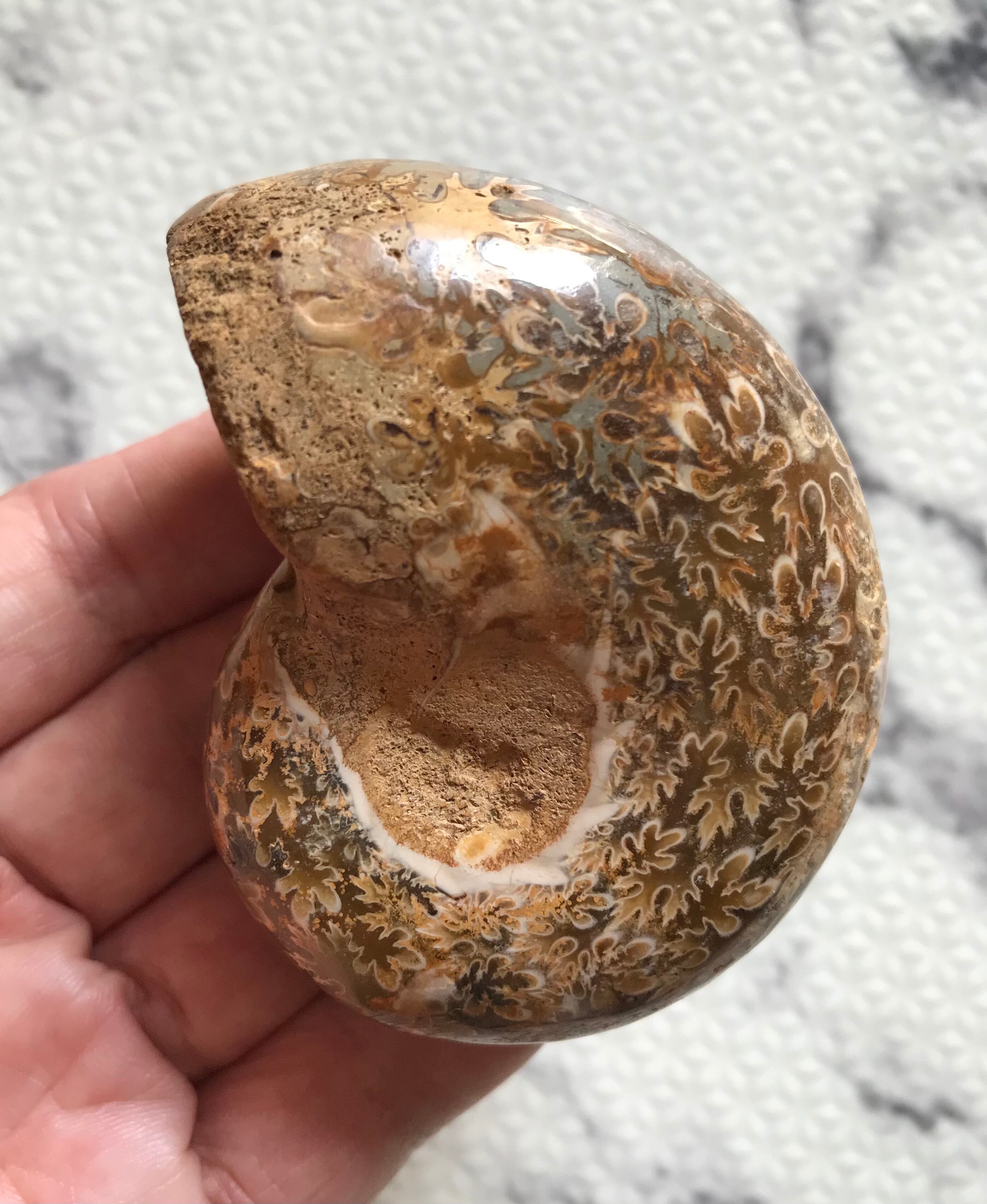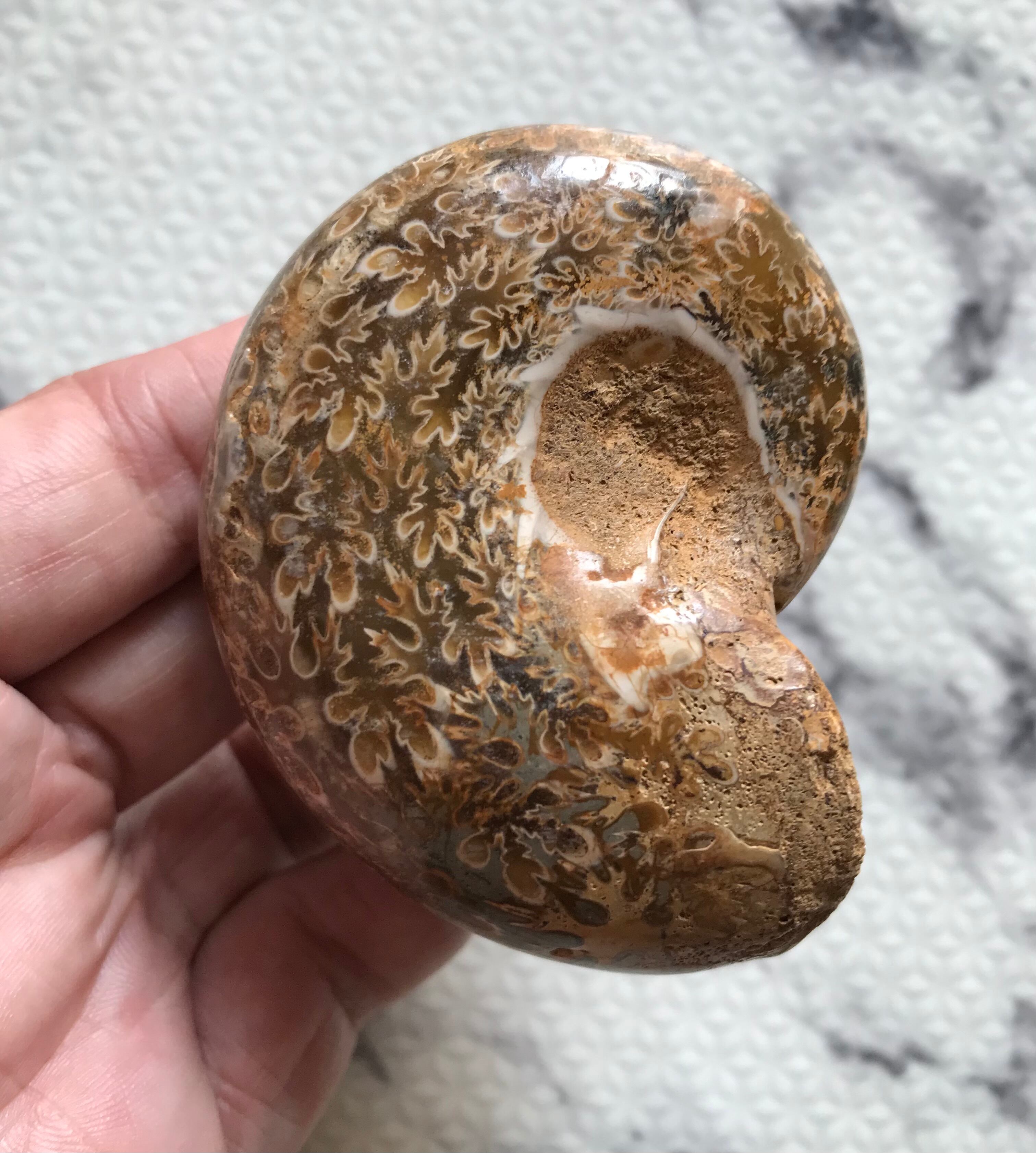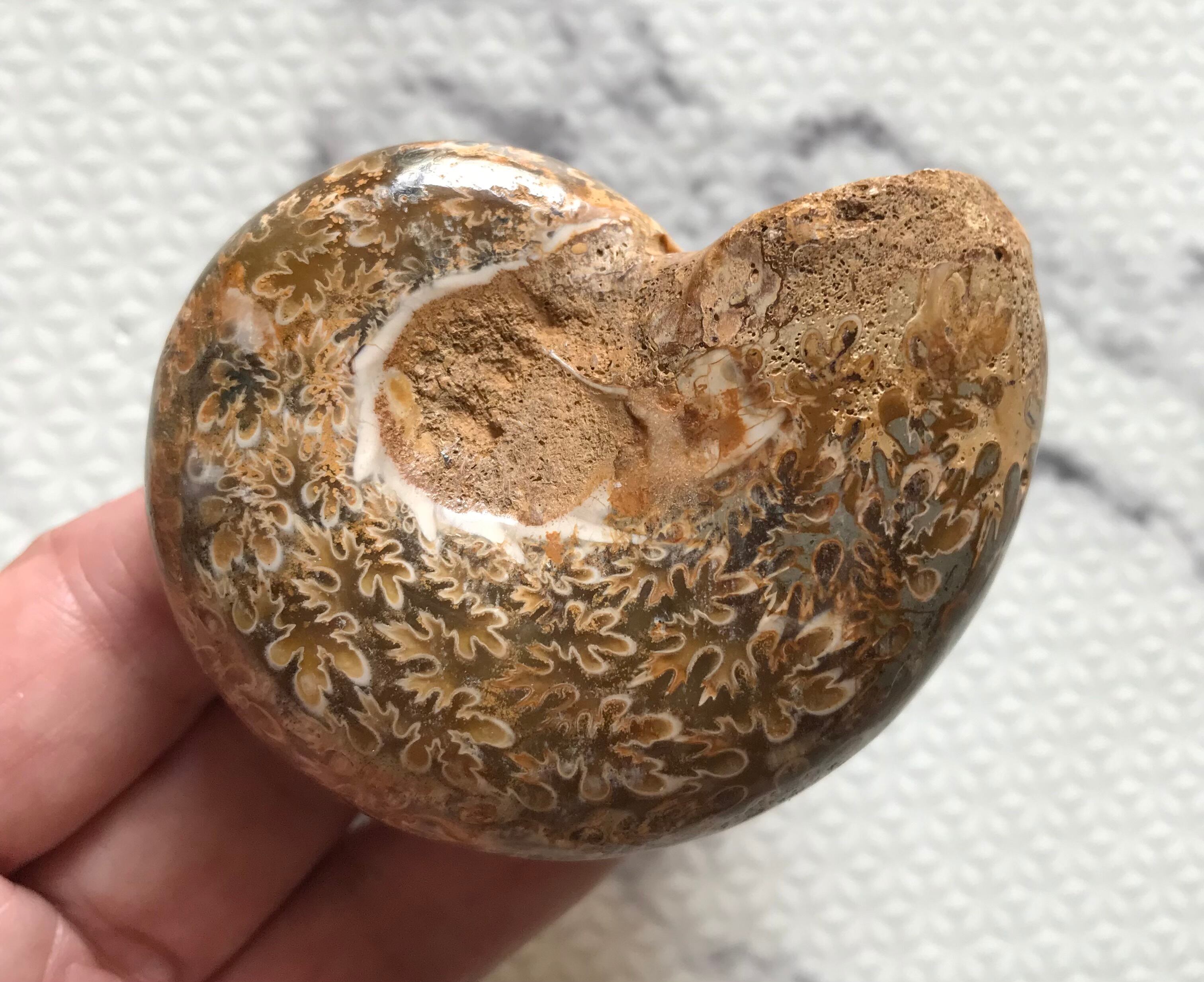 チュレア地層から出る白褐色の未研磨フィロセラスです。自然な色合いのアンモナイトをお探しの方や、プレゼントとしての化石をお考えの方はこの機会にいかがでしょうか。