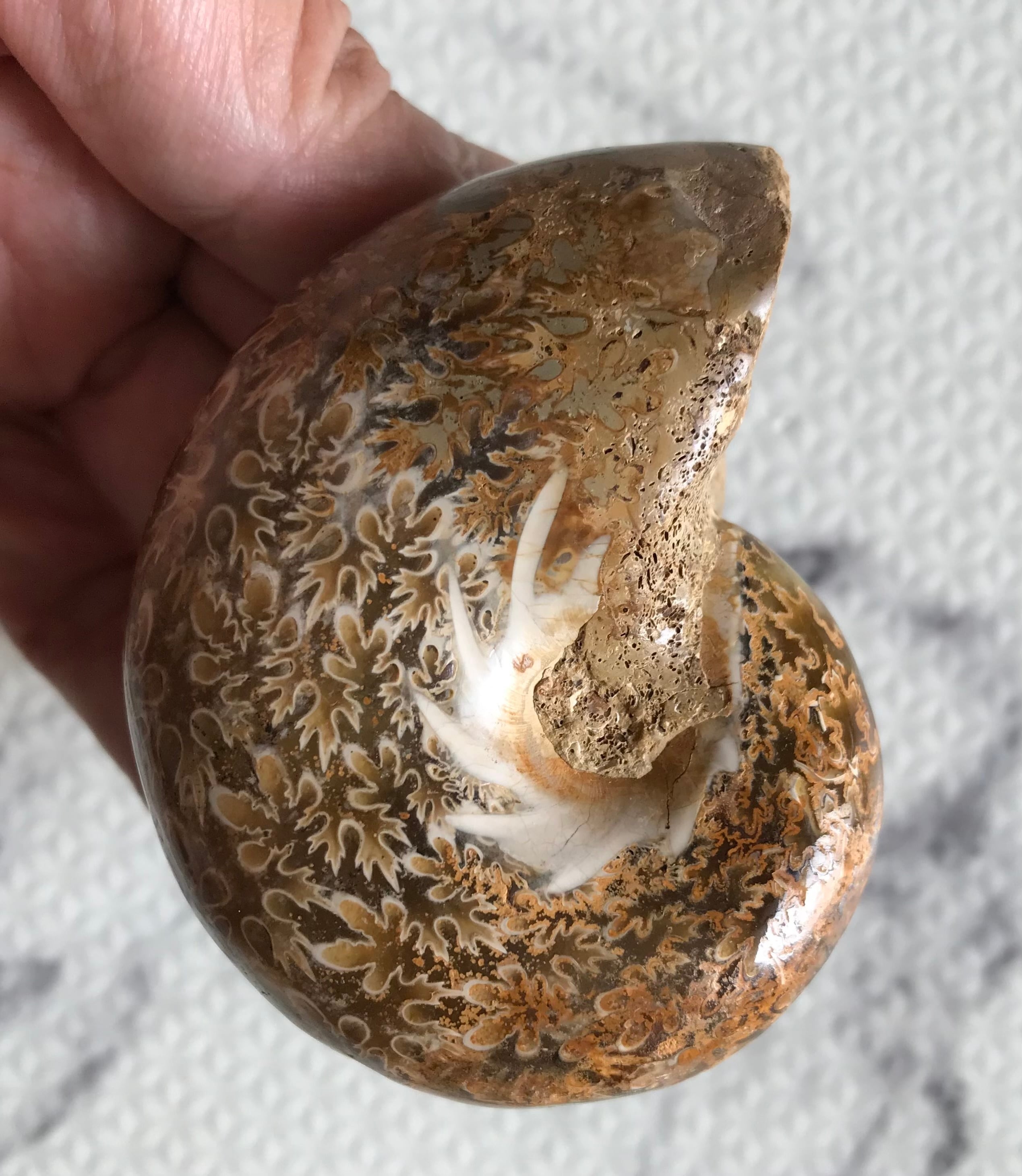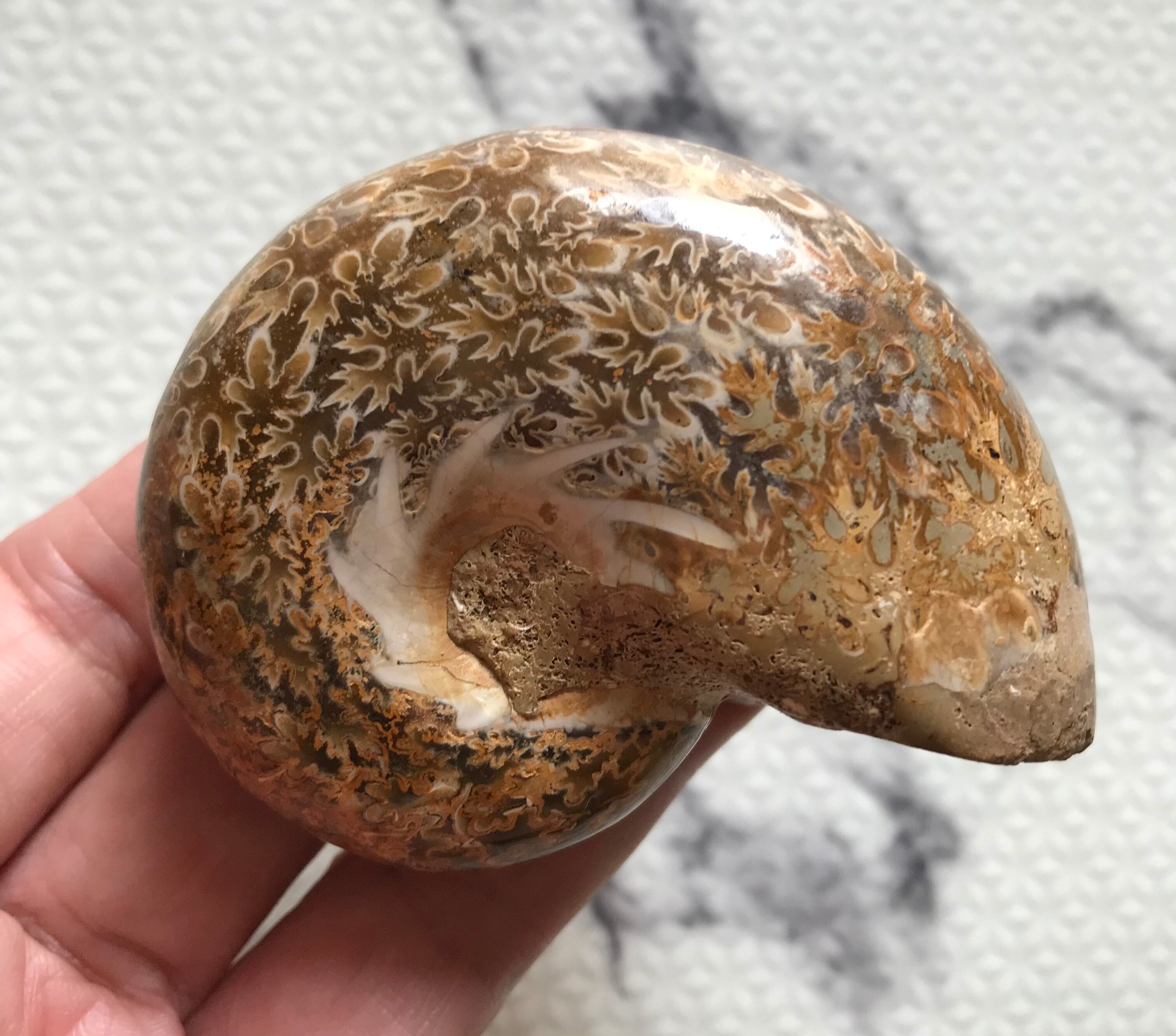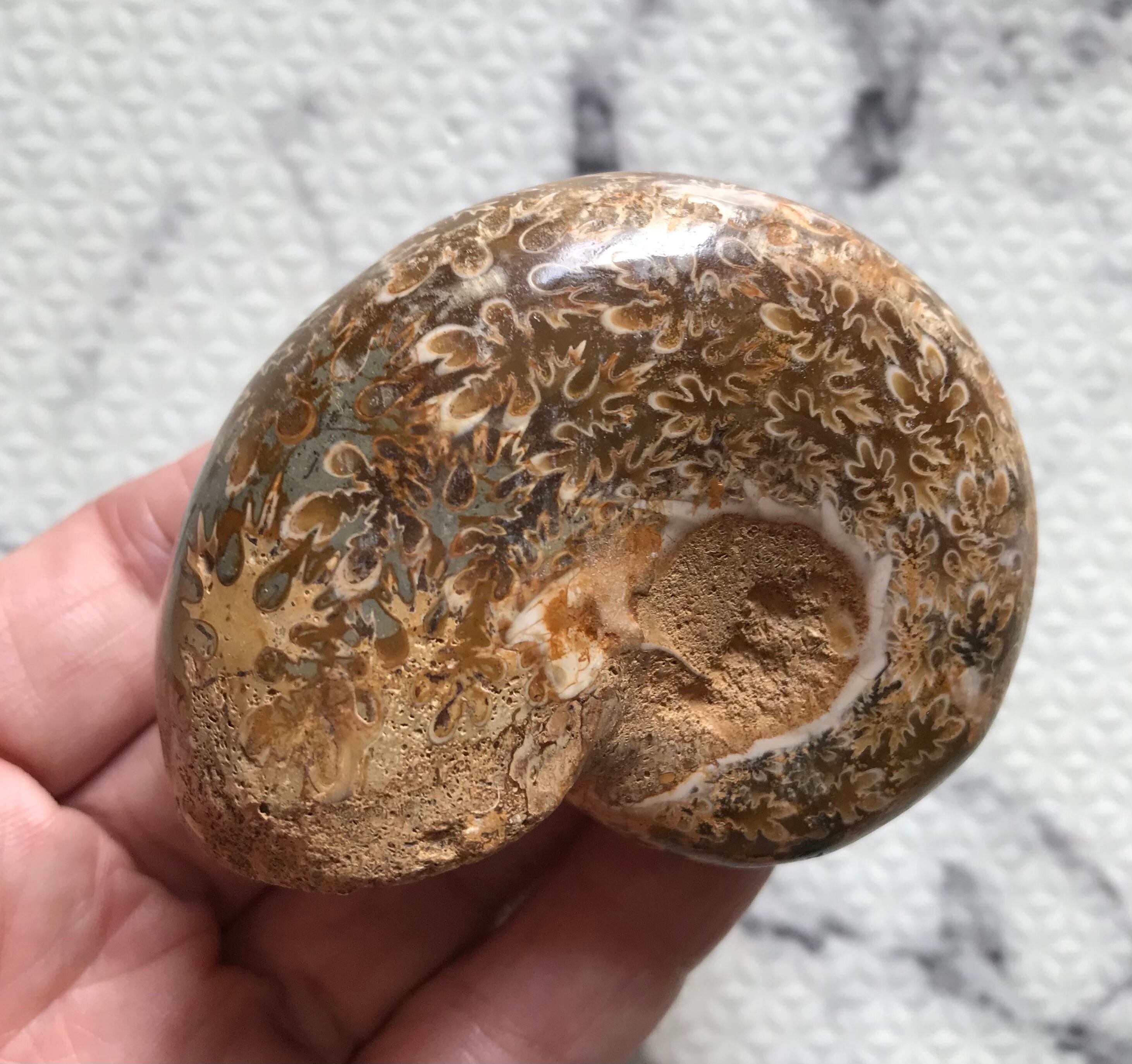 チュレア地層から出る白褐色の未研磨フィロセラスです。自然な色合いのアンモナイトをお探しの方や、プレゼントとしての化石をお考えの方はこの機会にいかがでしょうか。