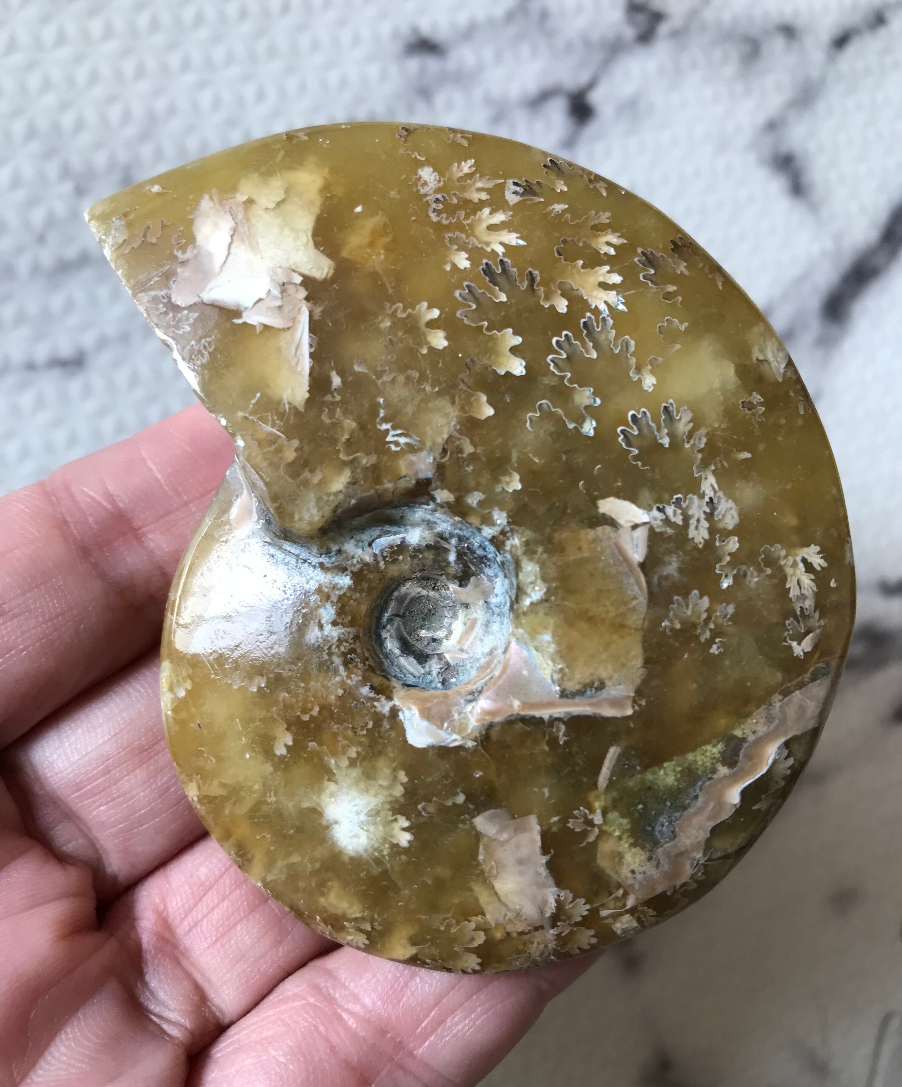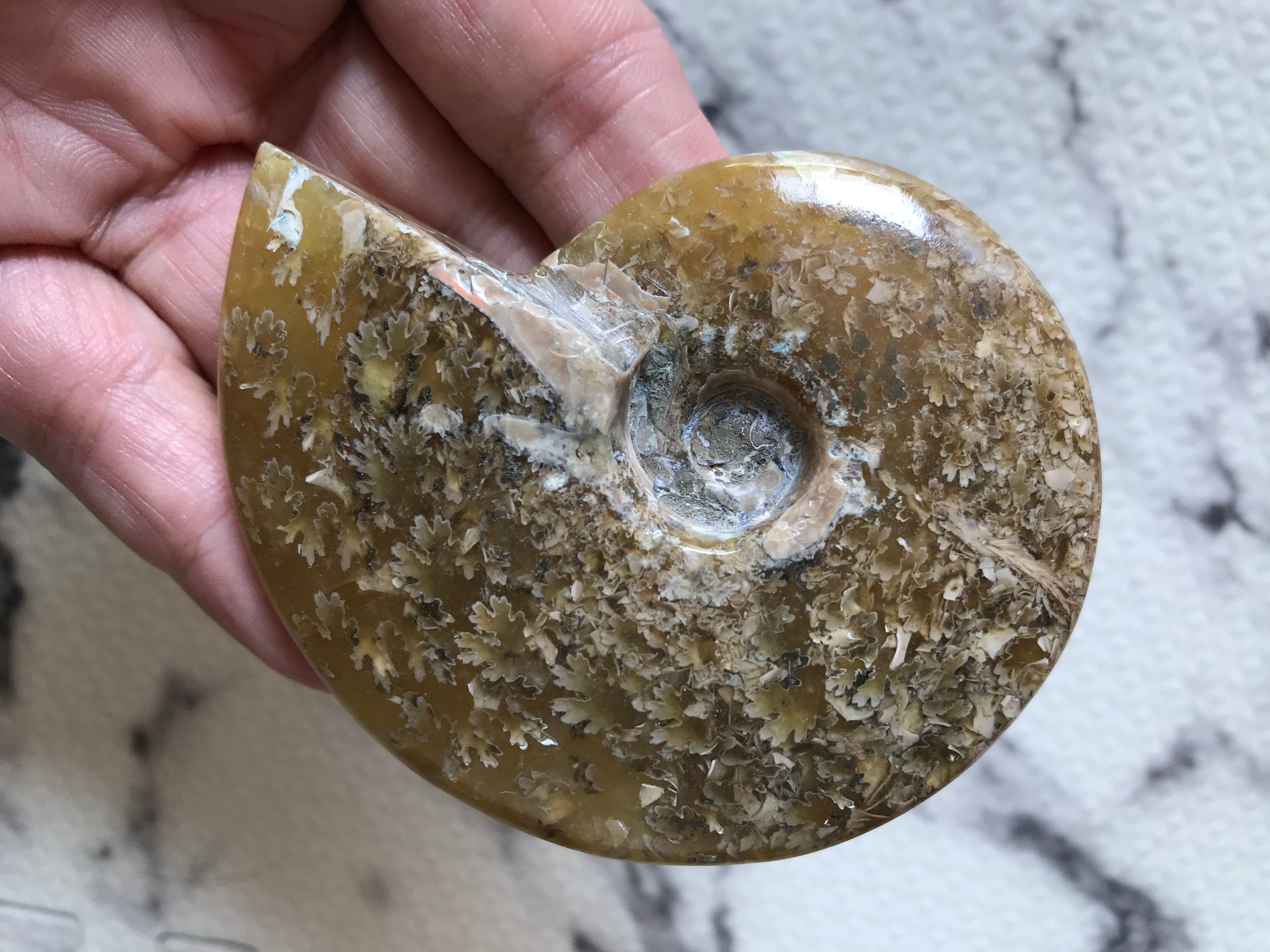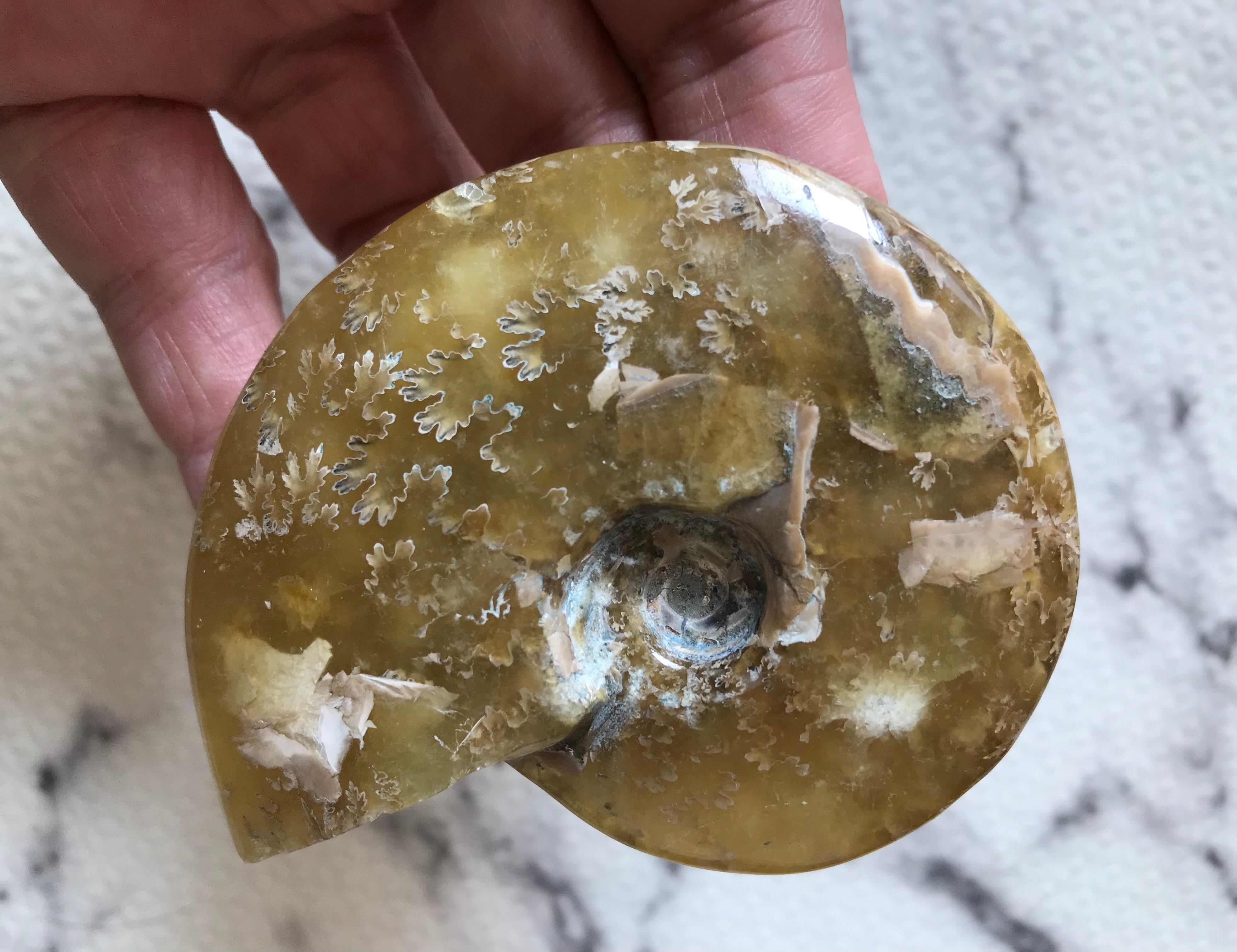 遠方の国マダガスカルから友人を通じて到着した縫合線が現れたアンモナイトになります。ご存知のとおり、アンモナイトは一つ一つが個性をもち、表情が異なりますので、コレクションにいかがでしょうか。