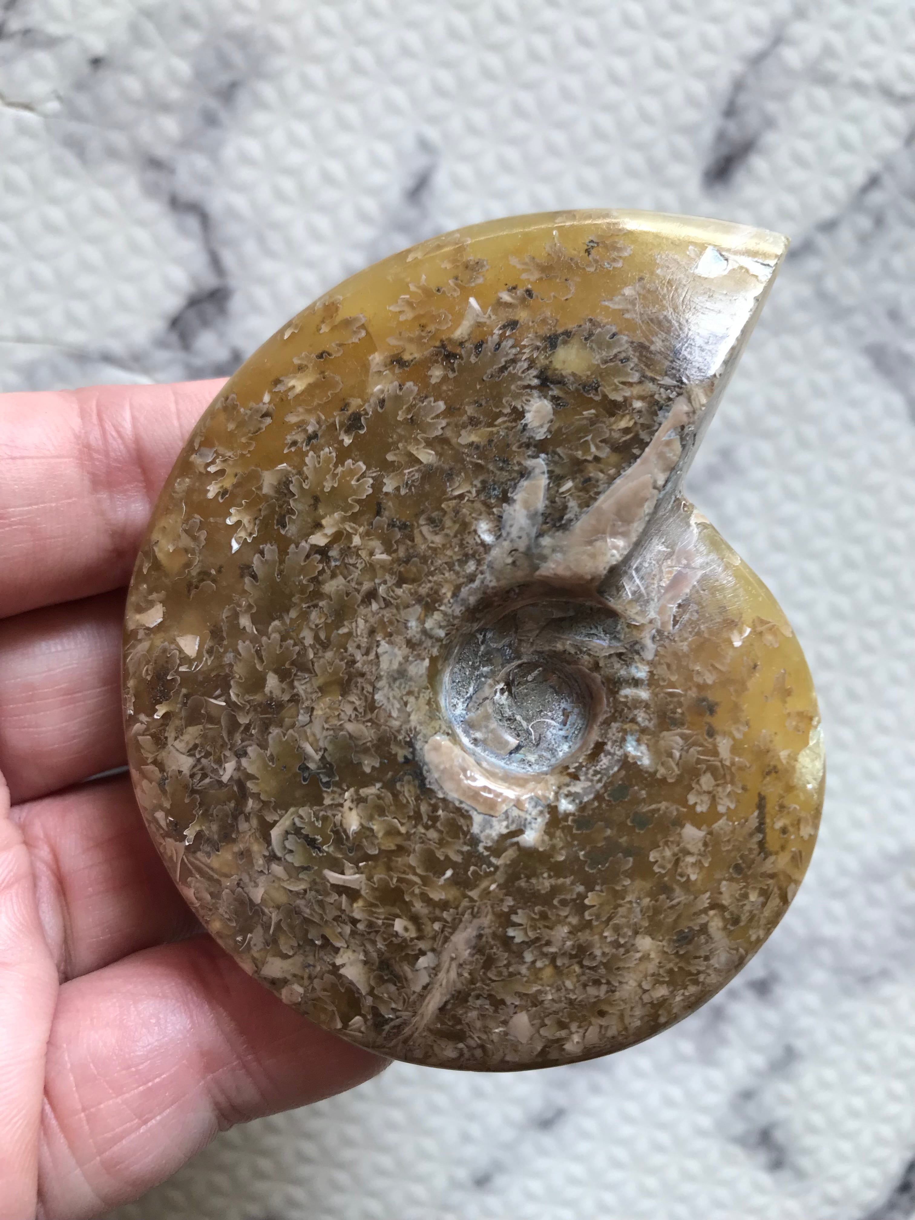商品名:マダガスカル産 縫合線の浮き出るアンモナイト化石 方解石化個体