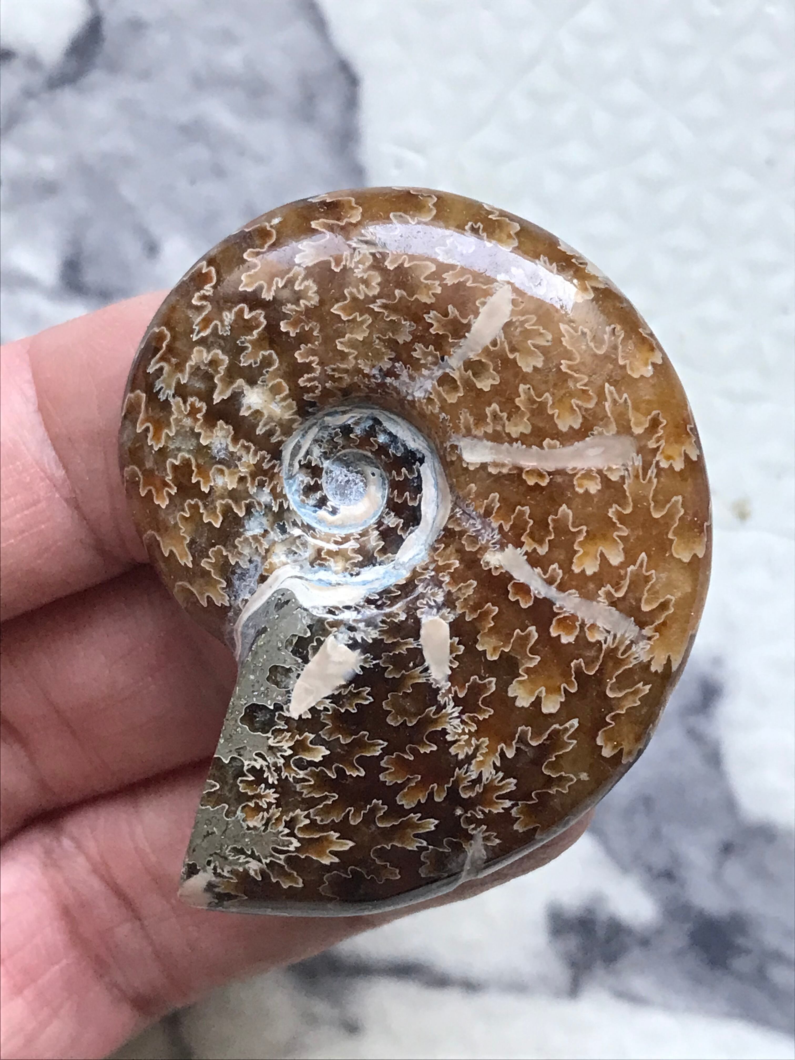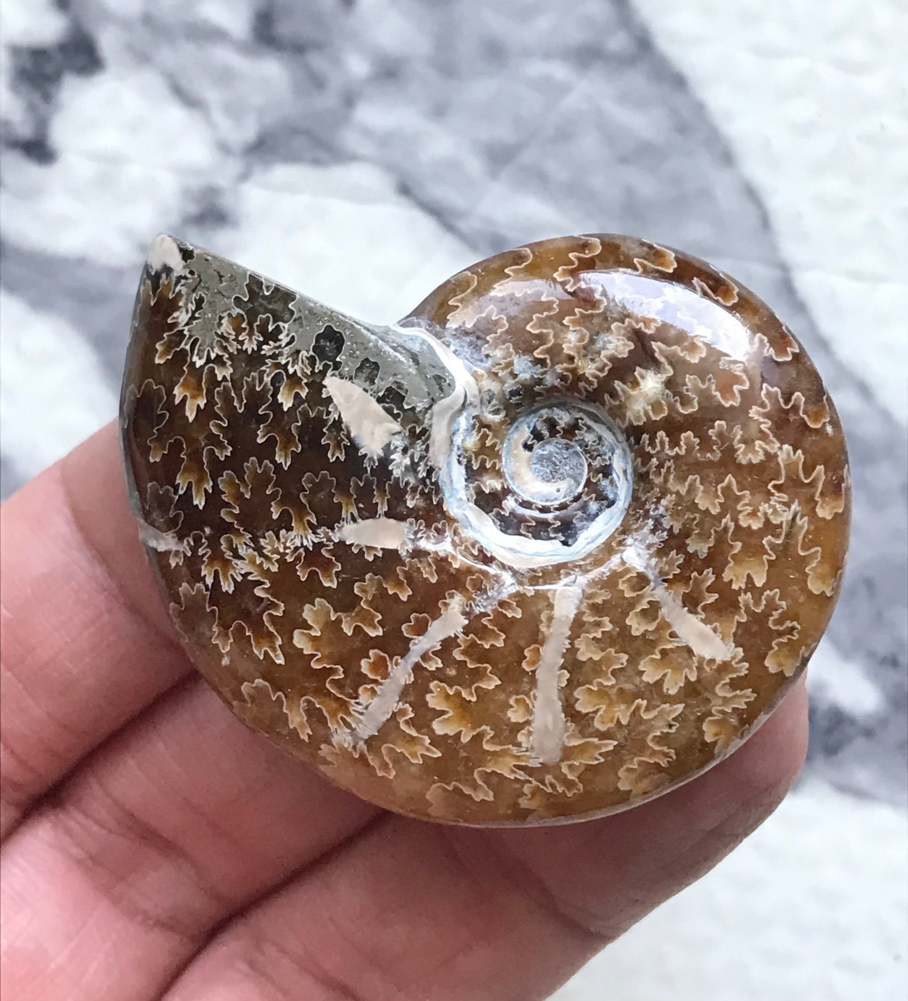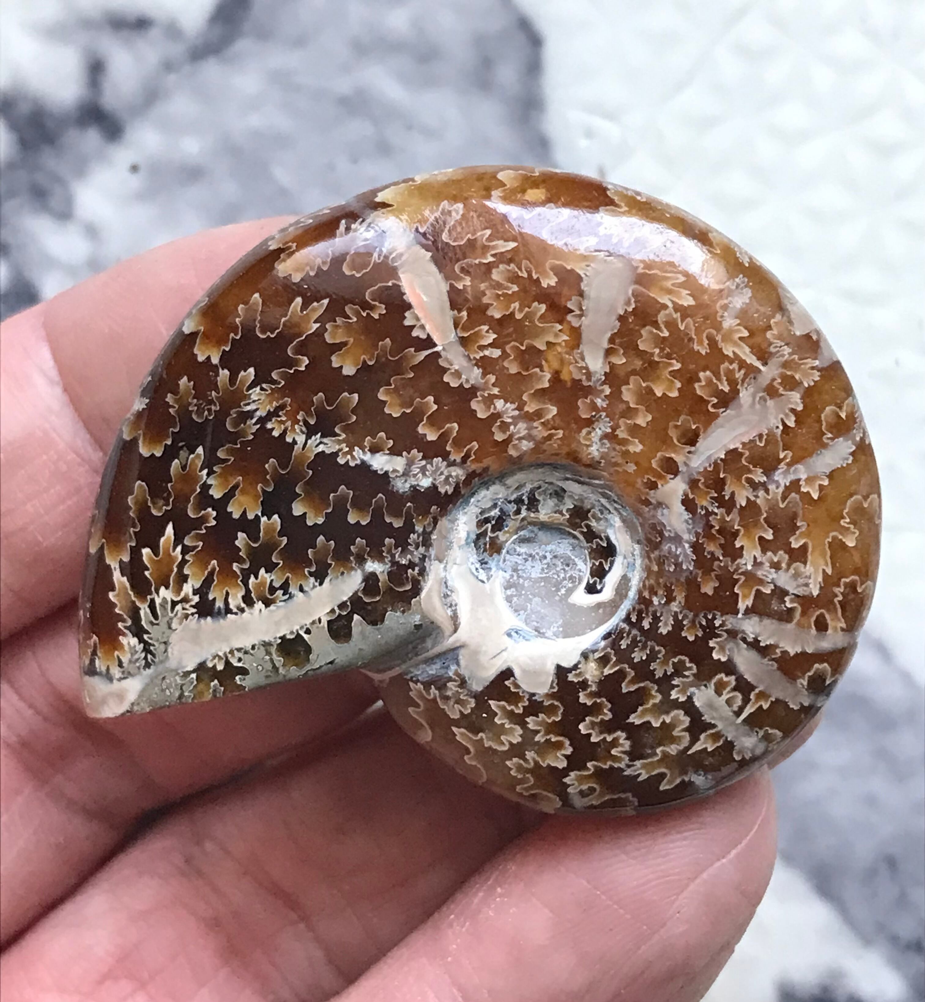 縫合線が見られる光沢研磨済み個体になります。この自然にできたにも関わらず整った縞模様、個体によっては星模様を縫合線と呼びます。