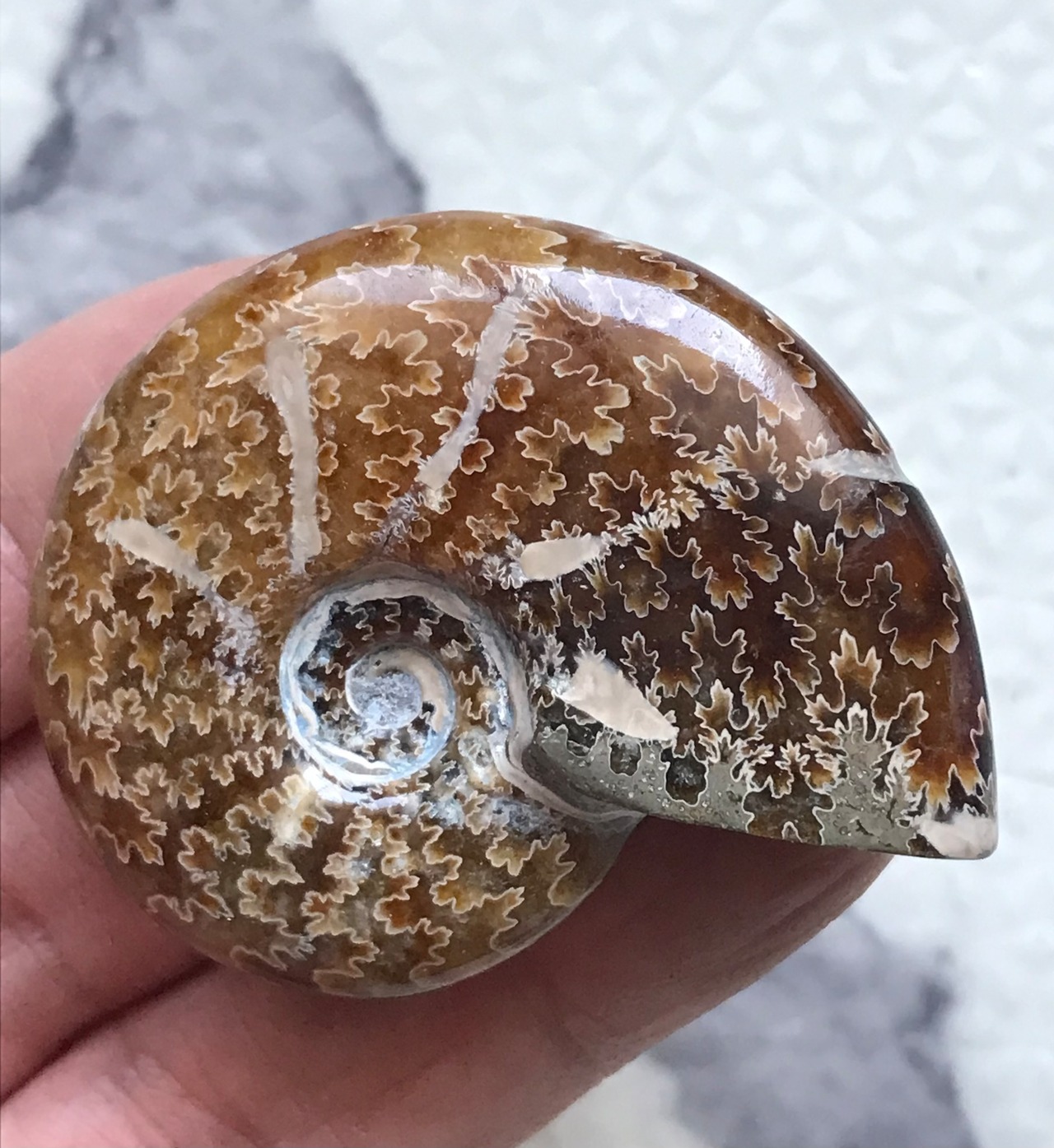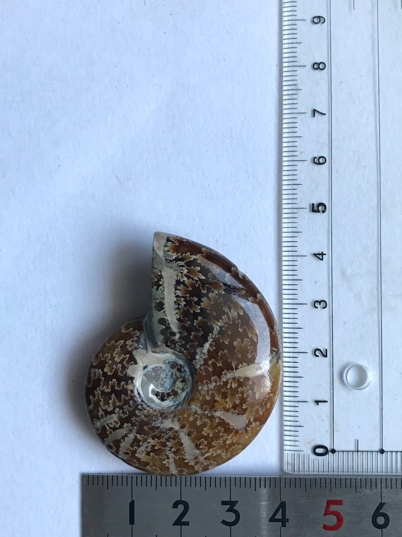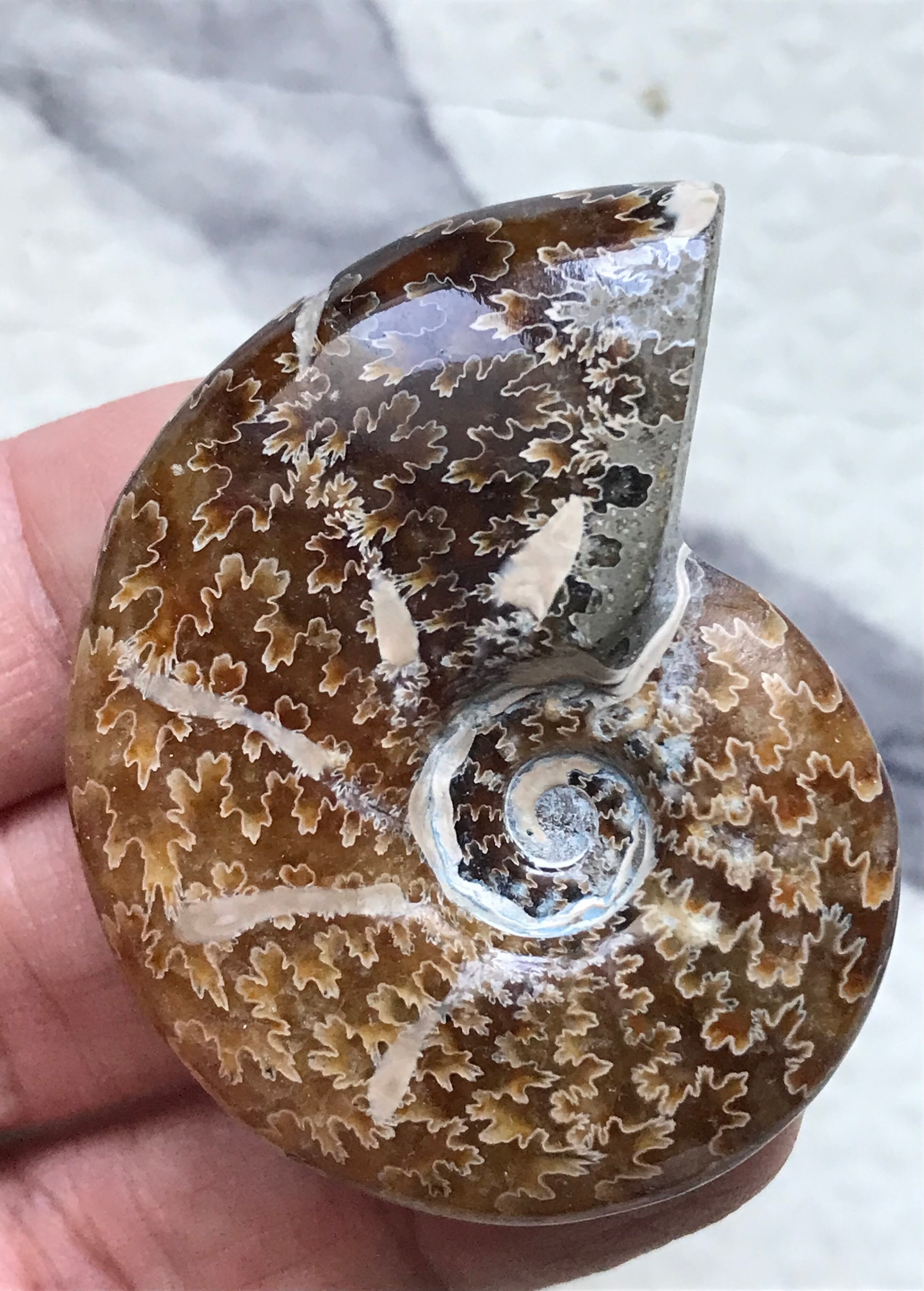 縫合線が見られる光沢研磨済み個体になります。この自然にできたにも関わらず整った縞模様、個体によっては星模様を縫合線と呼びます。