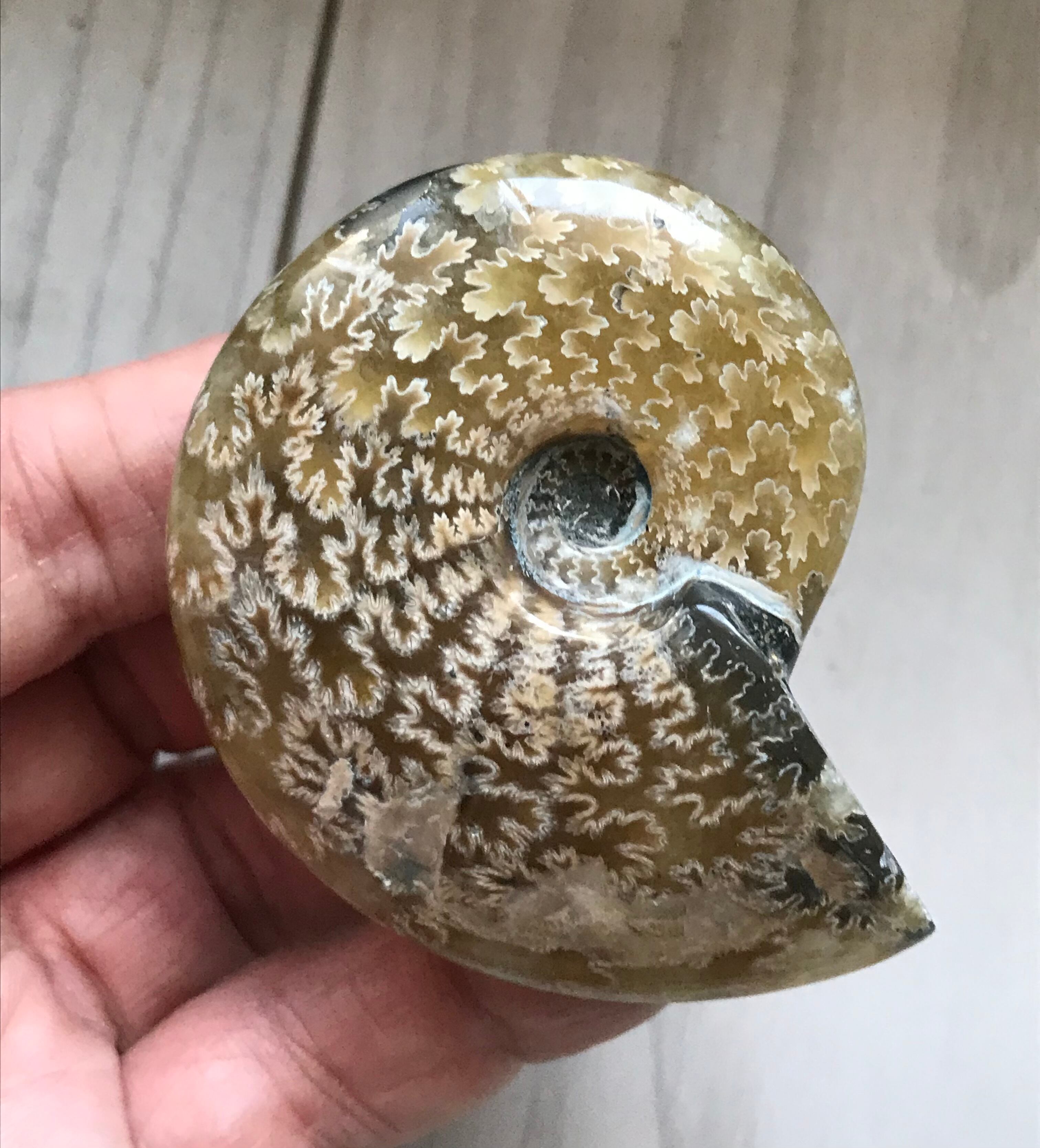 遠方の国マダガスカルから友人を通じて到着した縫合線が現れたアンモナイトになります。ご存知のとおり、アンモナイトは一つ一つが個性をもち、表情が異なりますので、コレクションにいかがでしょうか。