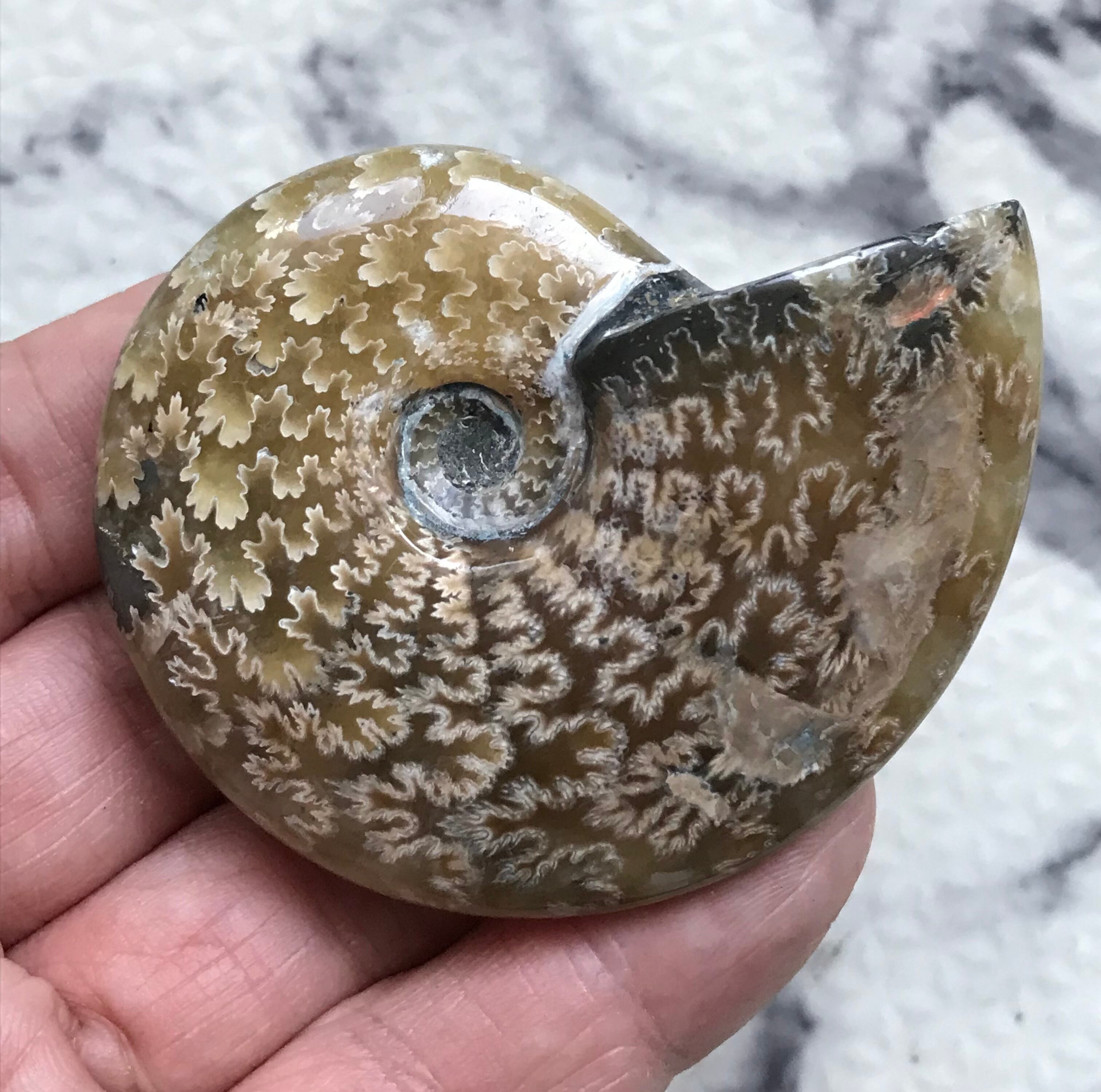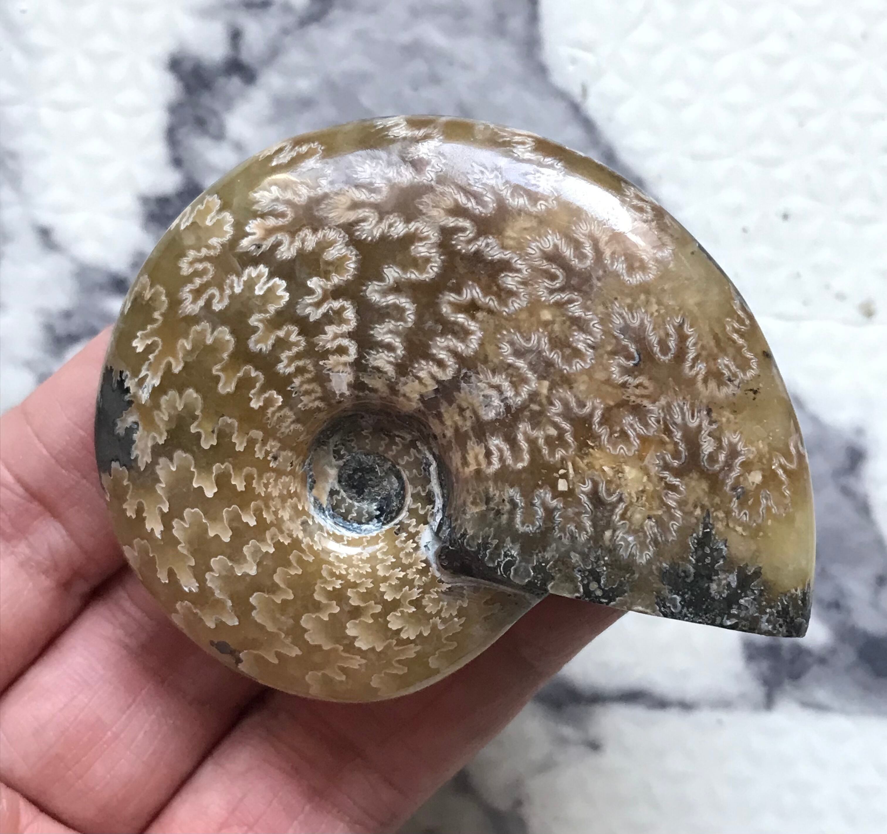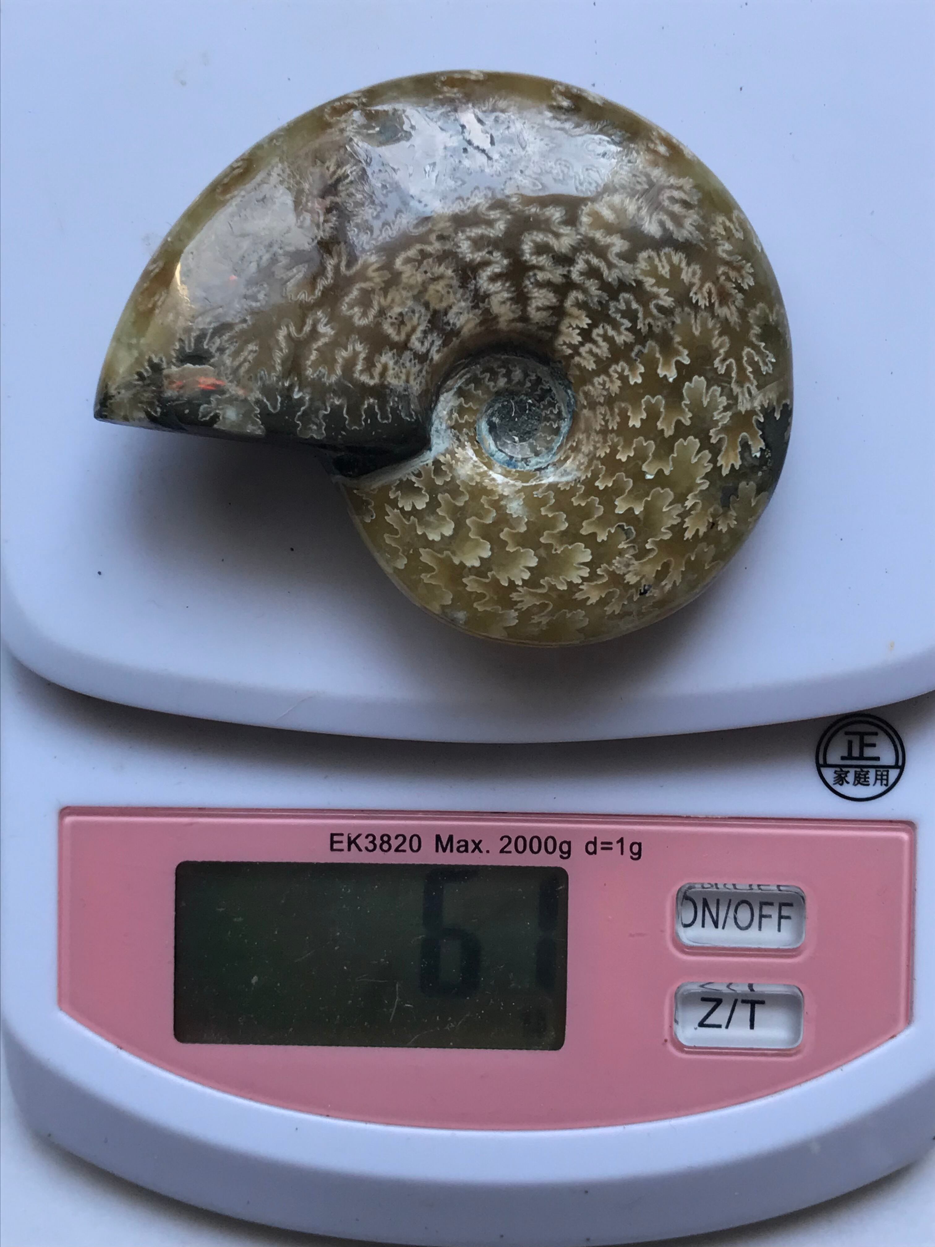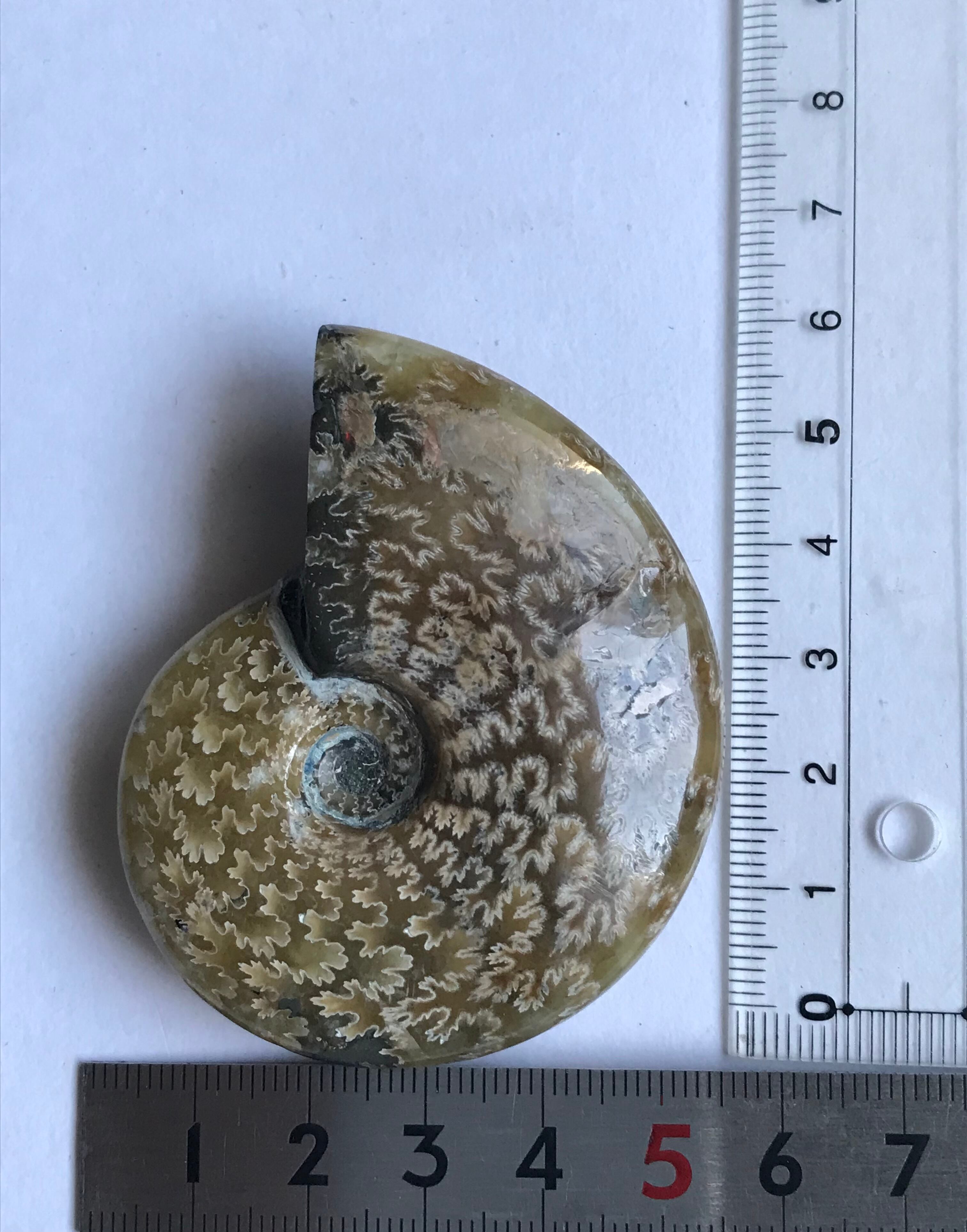縫合線が見られる光沢研磨済み個体になります。この自然にできたにも関わらず整った縞模様、個体によっては星模様を縫合線と呼びます。