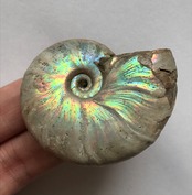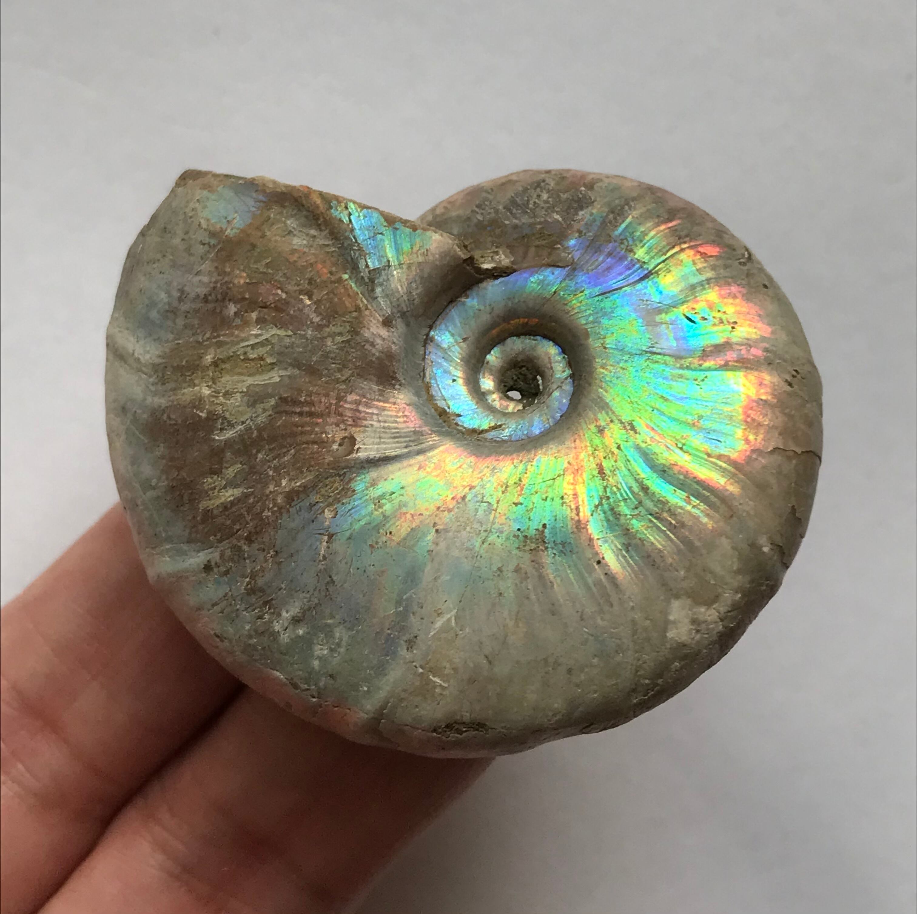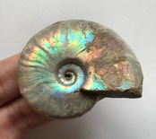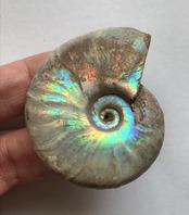 マダガスカル産 遊色虹色アンモナイト-青(クレオニセラス)34g 5.2cm青紫緑にピンク発色個体 穴あり