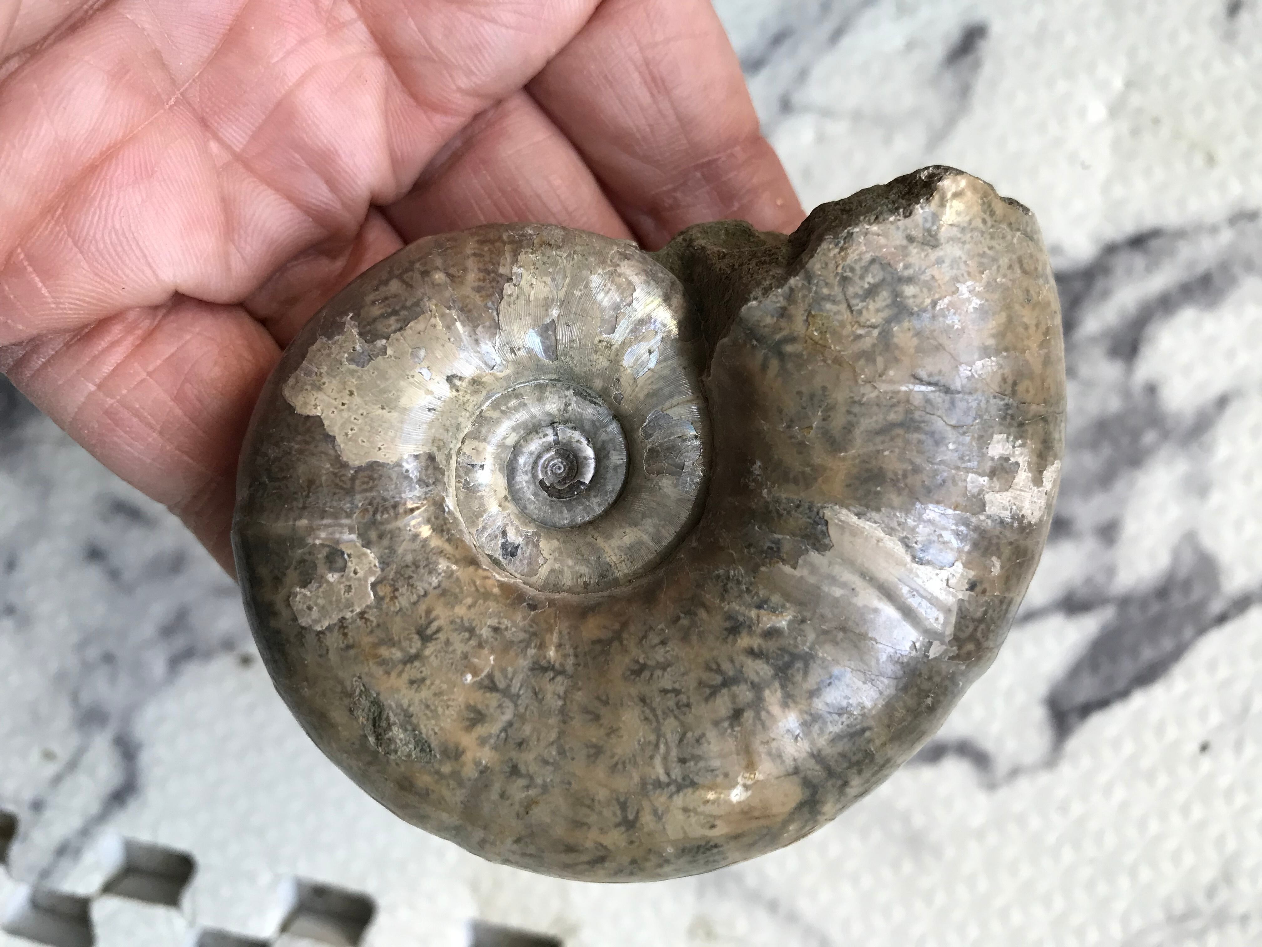 ■アンモナイトは、古生代シルル紀末期から中生代白亜紀末までの約3億5000万年前後の間を、海洋に広く分布し繁栄していた頭足類の分類群の一つです。 全ての種が平らな巻き貝の形をした殻を持っているのが特徴です。