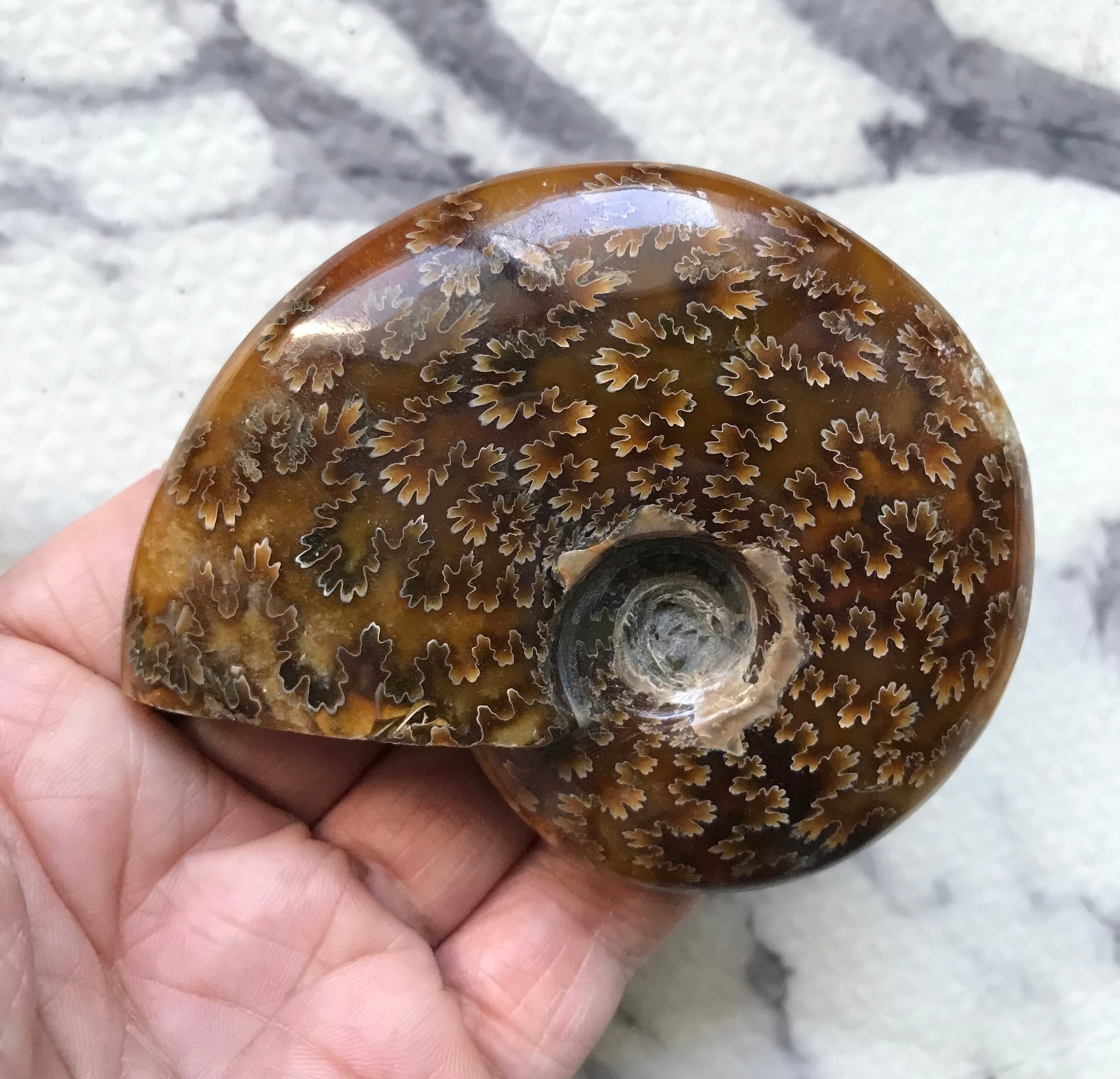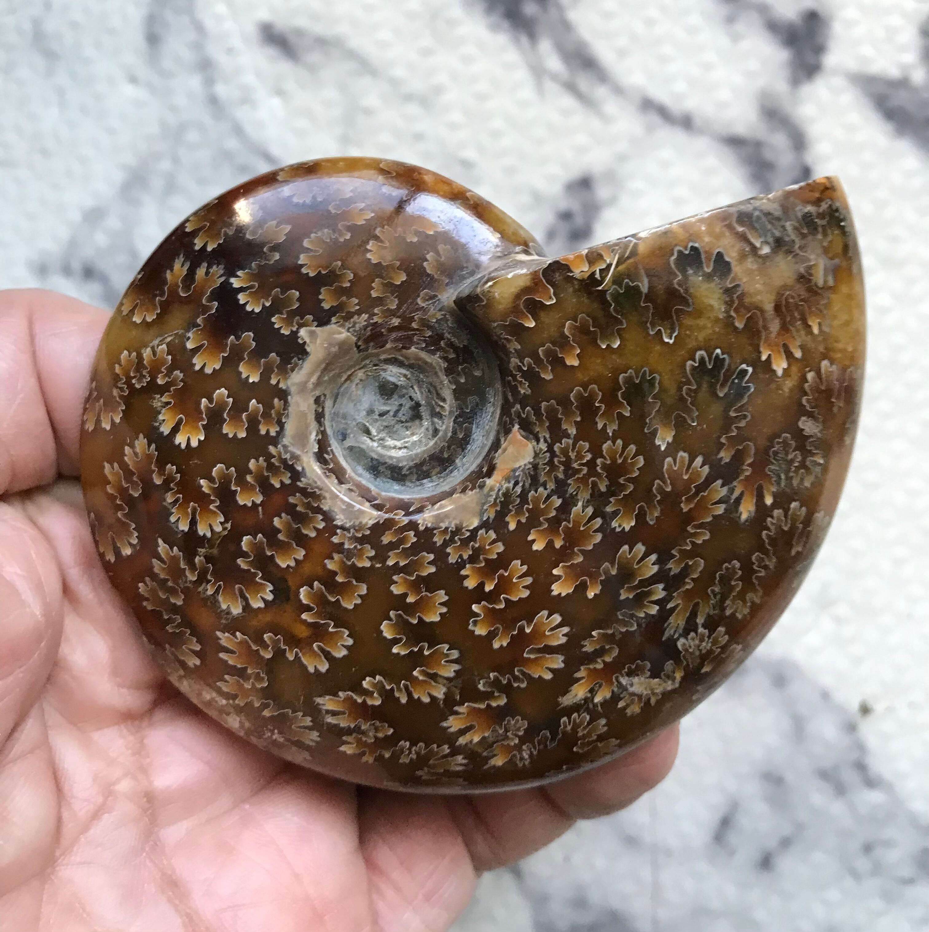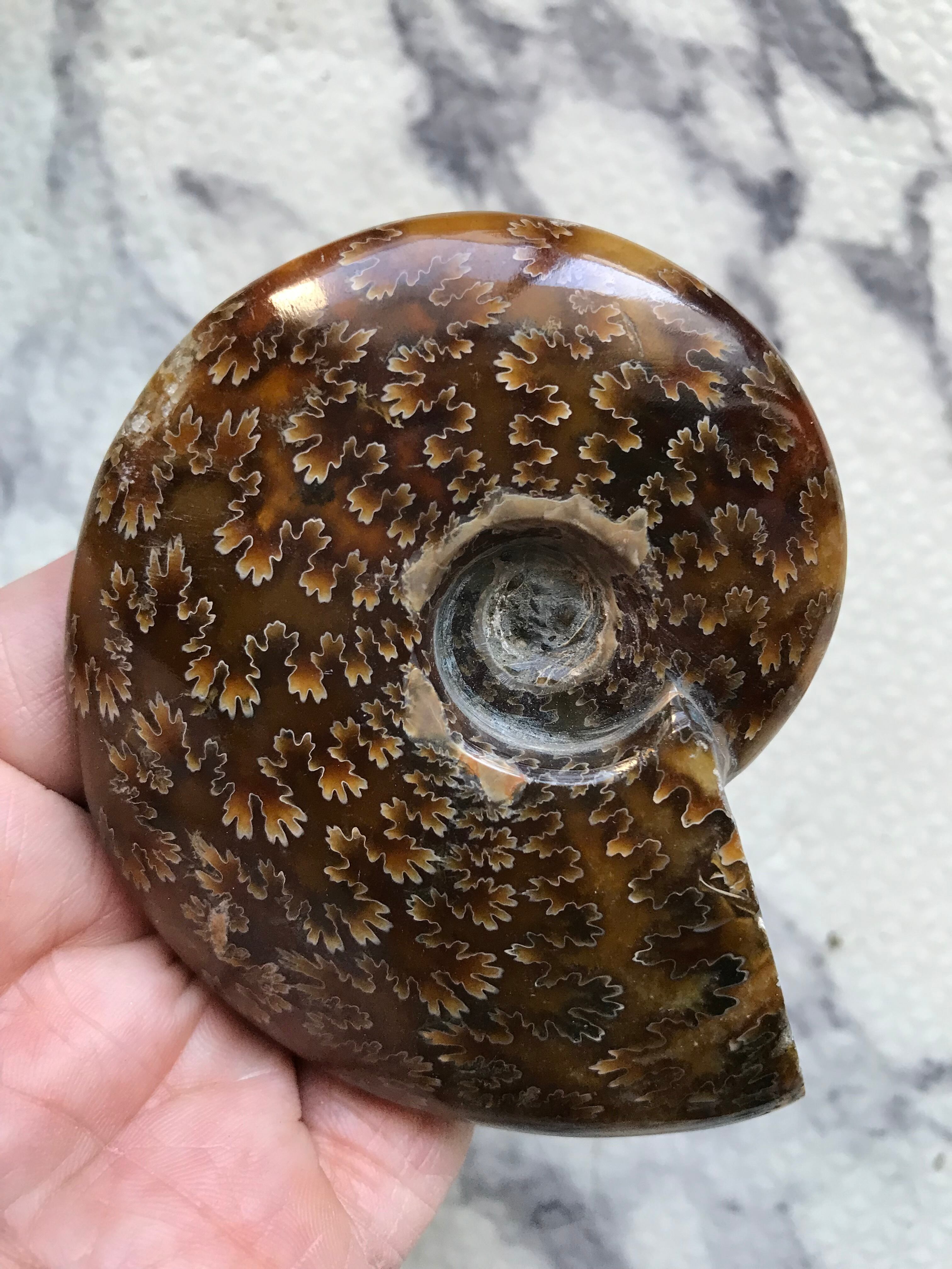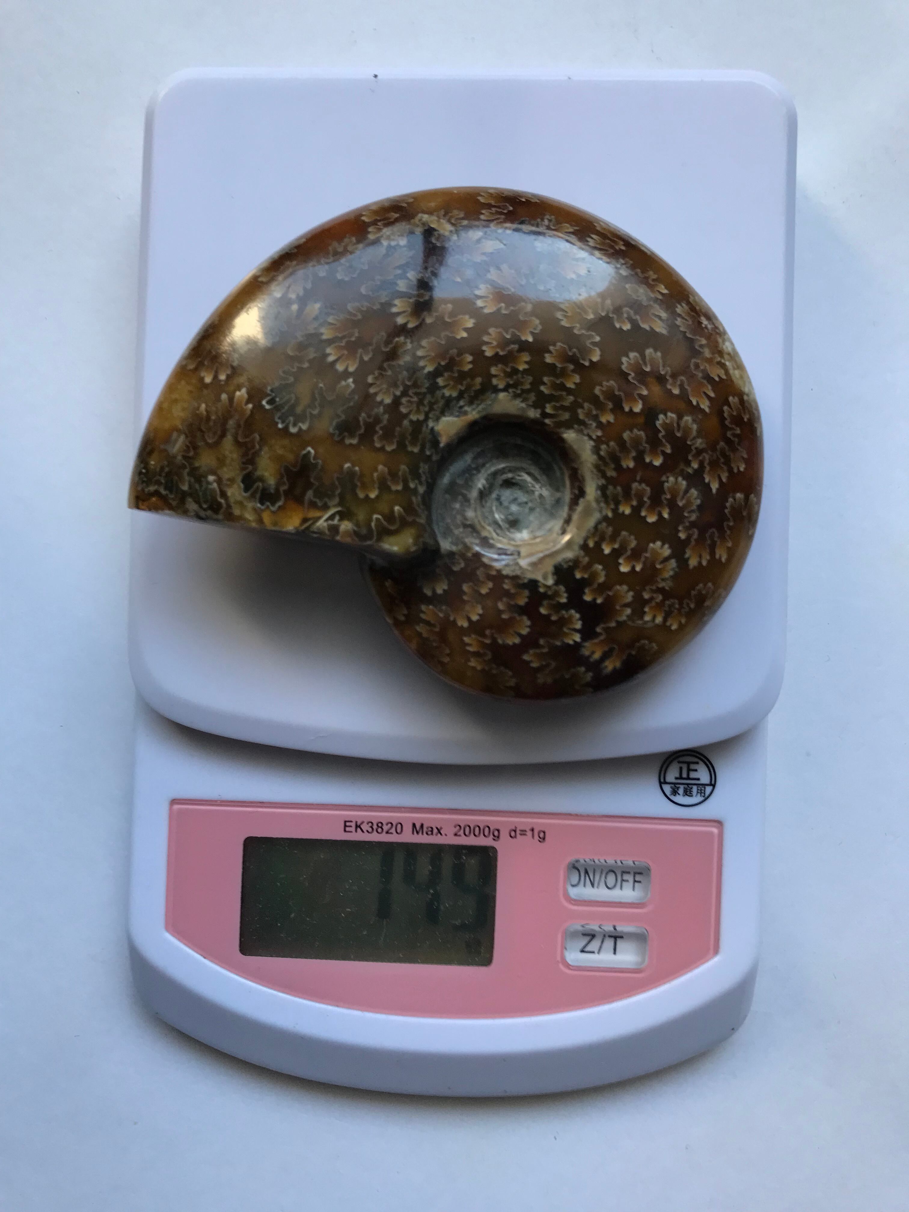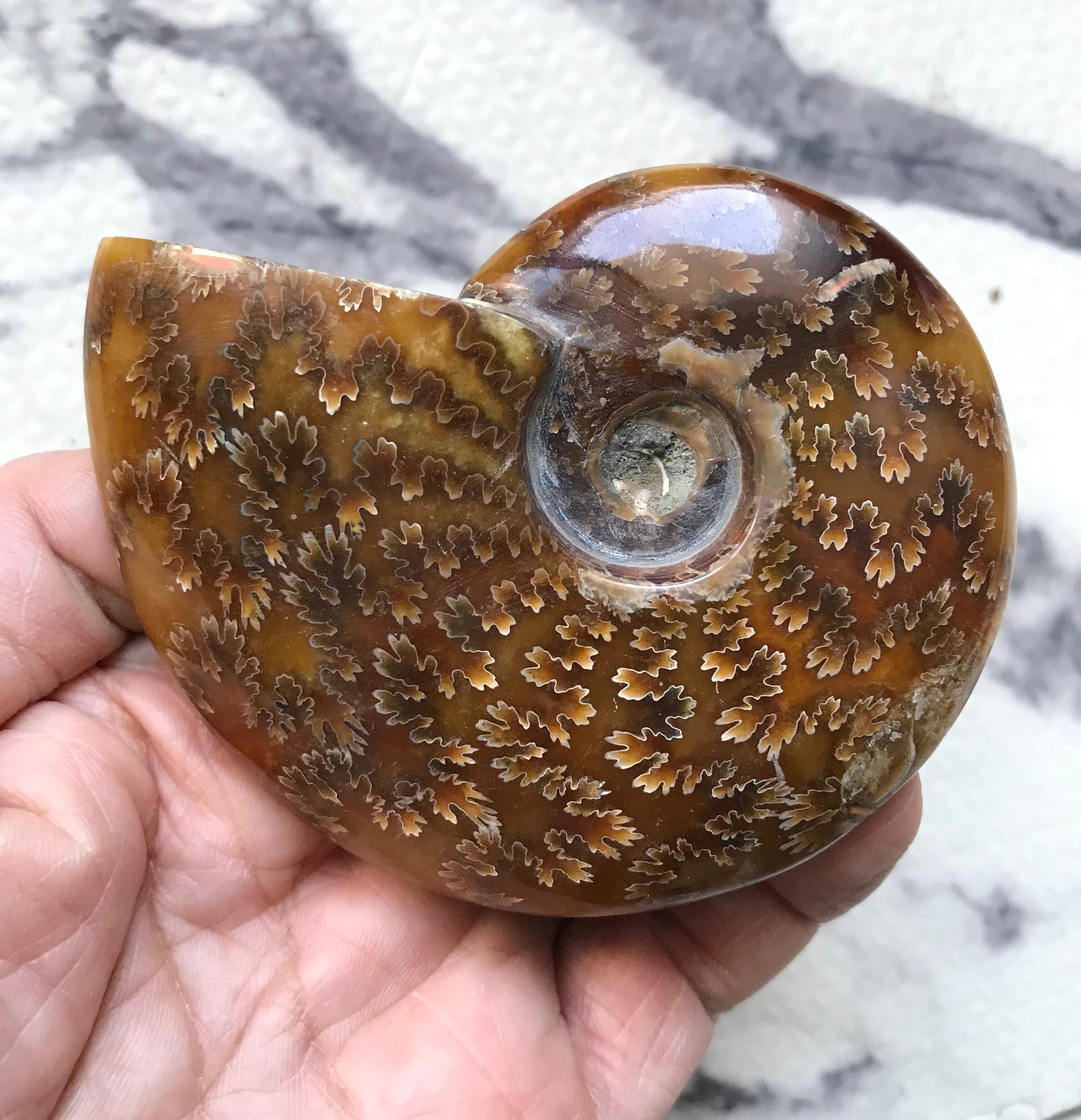 縫合線が見られる光沢研磨済み個体になります。この自然にできたにも関わらず整った縞模様、個体によっては星模様を縫合線と呼びます。
